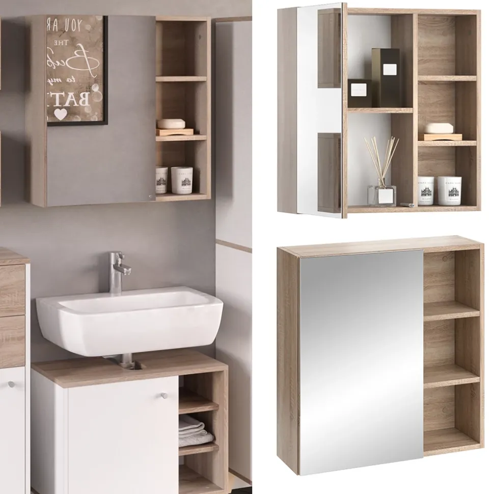 - MATERIAL: Der Badezimmer-Spiegelschrank besteht aus pflegeleichter Spanplatte 16 mm, mit einer Melaminharzbeschichtung. Einige Bestandteile des Artikels sind aus Glas gefertigt