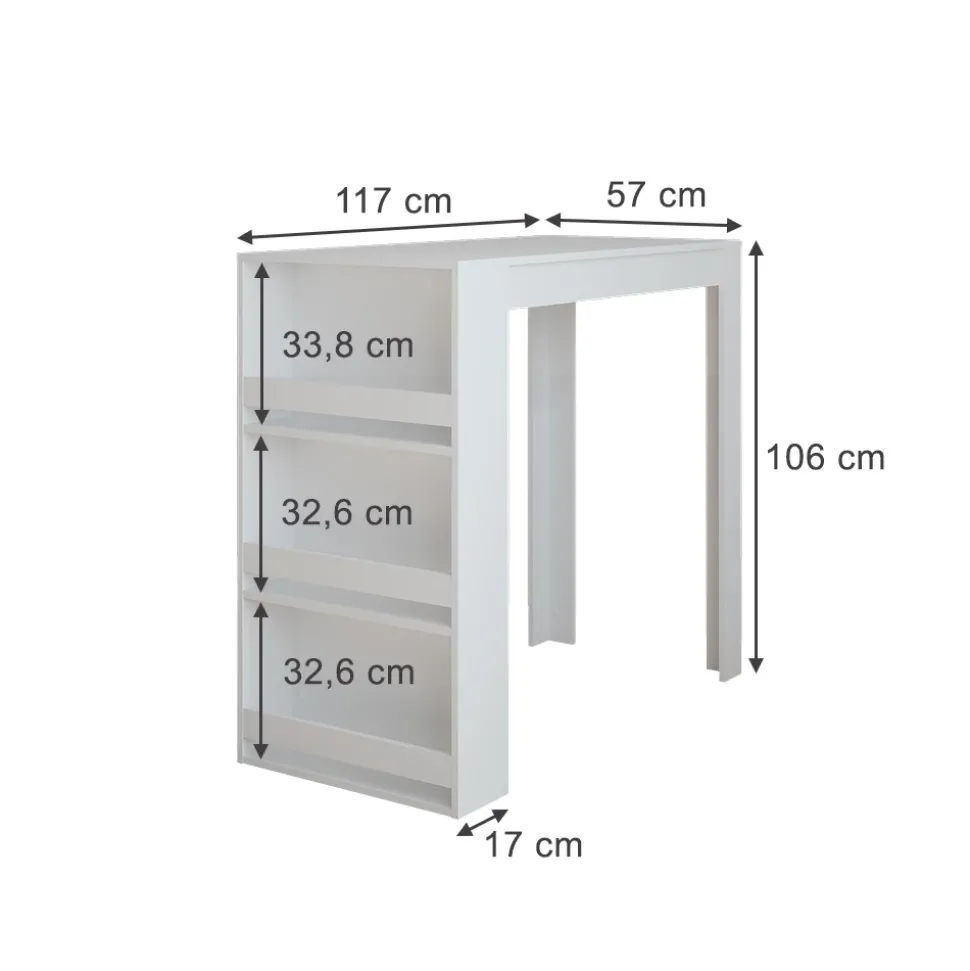- MAßE: Der Stehtisch für die Küche hat eine Tiefe von 117 cm, eine Breite von 57 cm und eine Höhe von 106 cm – ideal für stilvolles Wohnen auf Barhöhe.