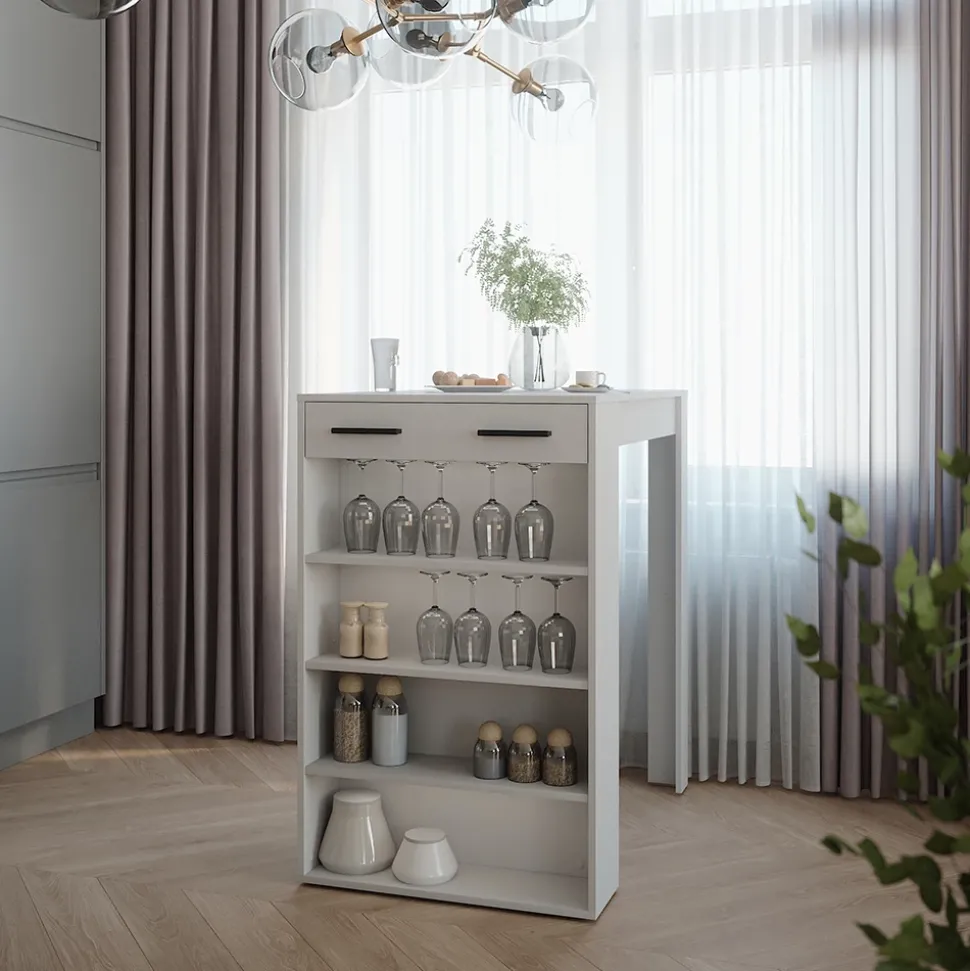 - Der Bartresen für das Esszimmer bietet Platz für drei verstellbare Einlegeböden und überzeugt mit einem flexiblen Verstellabstand von ± 32 mm.