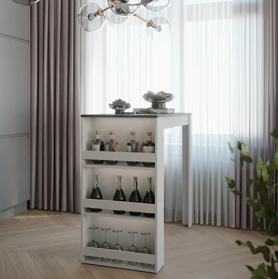 - MATERIAL: Der Bartisch besteht aus 16 mm starker, pflegeleichter Spanplatte.