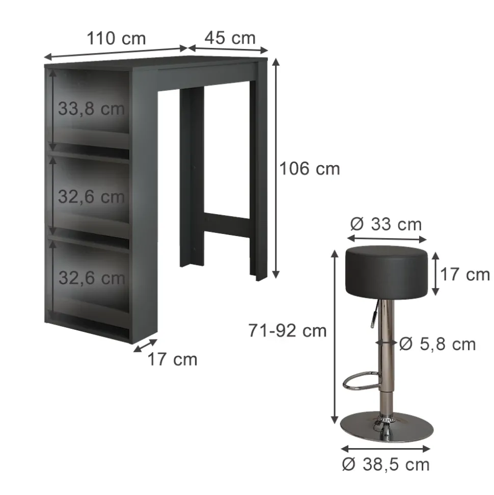Das Bartisch-Set „Repose“ ist die ideale Ergänzung für Ihre Küche oder Ihren Essbereich. Mit dem stilvollen Stehtisch, den bequemen Barhockern und dem praktischen Regal bietet dieses Set alles, was Sie für gemütliche Abende mit Familie und Freunden benötigen. Schaffen Sie Ihre persönliche Bistro-Atmosphäre und genießen Sie Cocktails oder ein entspanntes Frühstück am Bartresen. Mit dem Bartisch-Set „Repose“ bringen Sie nicht nur funktionale Möbel in Ihr Zuhause, sondern auch einen Ort der Gemeinsamkeit und des Genusses. Gönnen Sie sich dieses Set und erleben Sie unvergessliche Momente mit Ihren Liebsten.