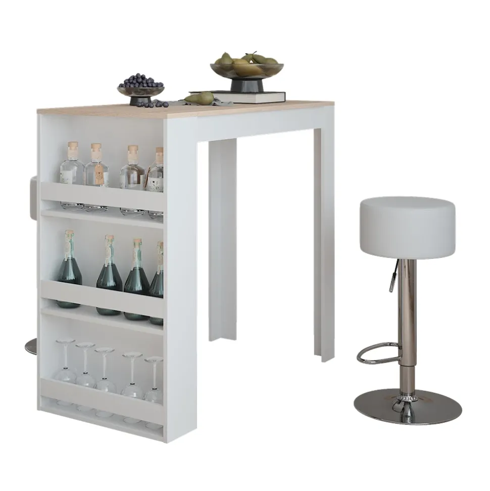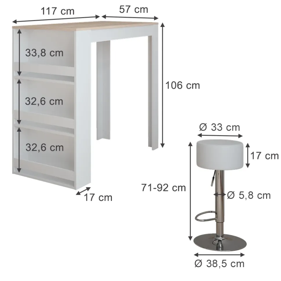 - MATERIAL: Der Bartisch besteht aus 16 mm starker, pflegeleichter Spanplatte.