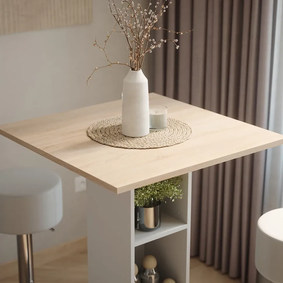 - MATERIAL: Der Bartisch besteht aus 16 mm starker, pflegeleichter Spanplatte.