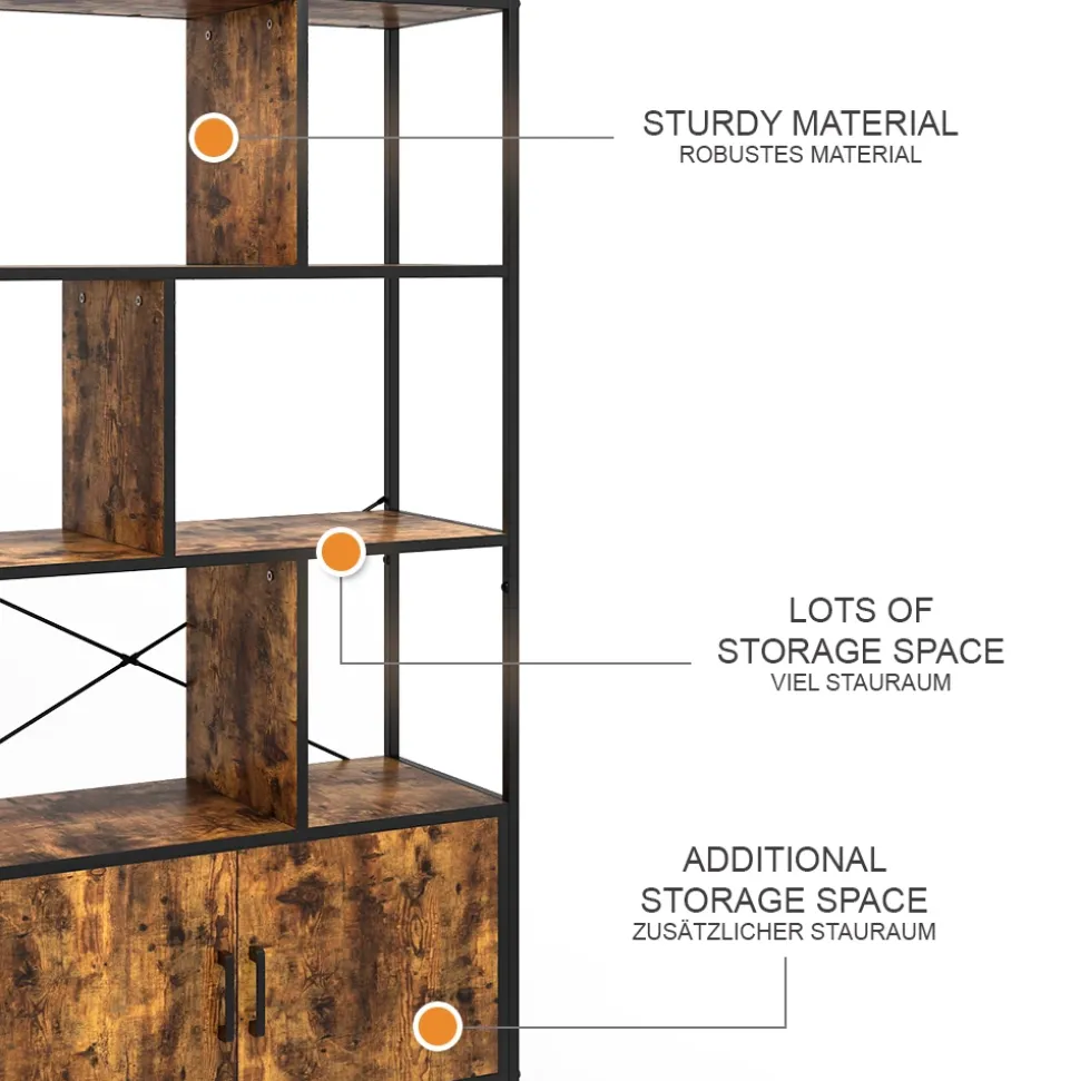 - Das Wohnzimmerregal, mit seinen 6 offenen Regalablagen, kann als Raumteiler verwendet werden und dient als stilvolle Aufbewahrungslösung.