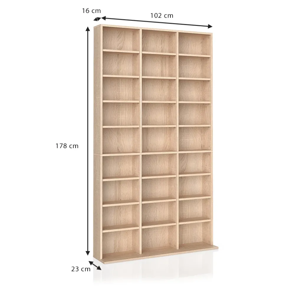 - MAßE: Der DVD-Schrank hat eine Breite von 102 cm, eine Höhe von 178 cm und eine Tiefe von 16 cm. Alle detaillierten Größen sind auf den Fotos angegeben.