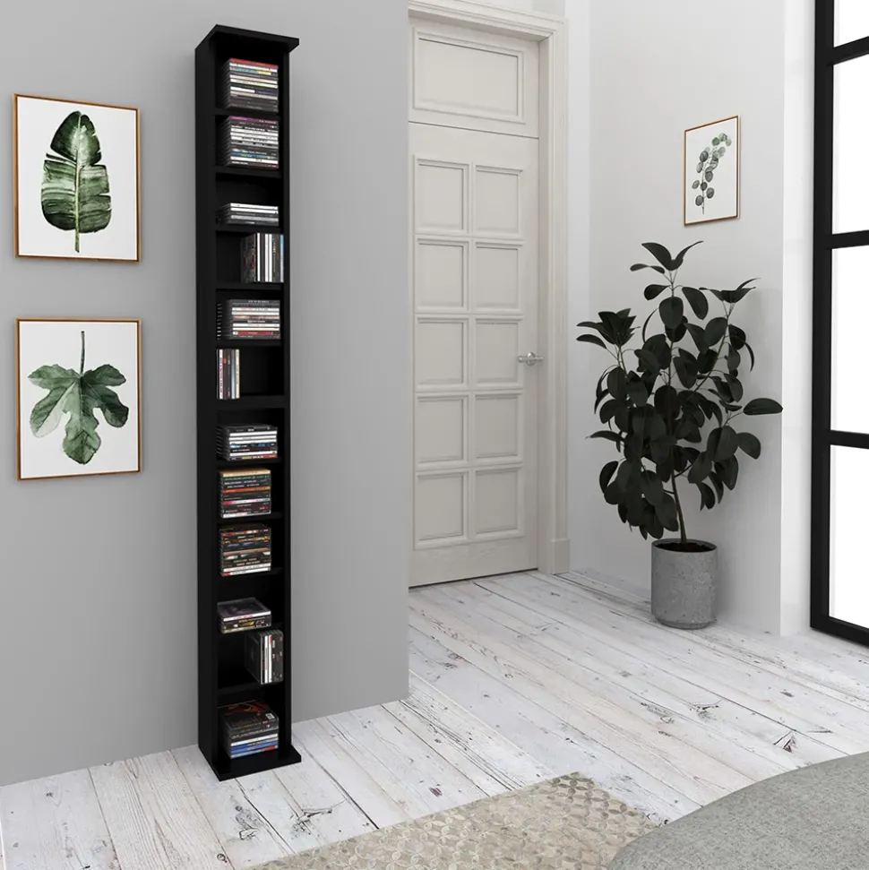 - MATERIAL: Das Regal für CDs besteht aus pflegeleichter Spanplatte 16 mm, mit einer Melaminharzbeschichtung