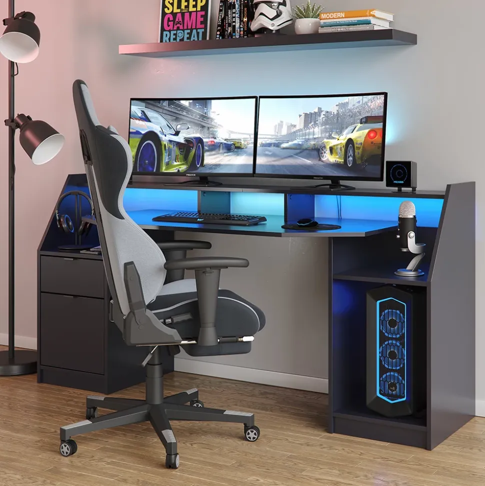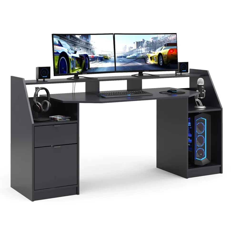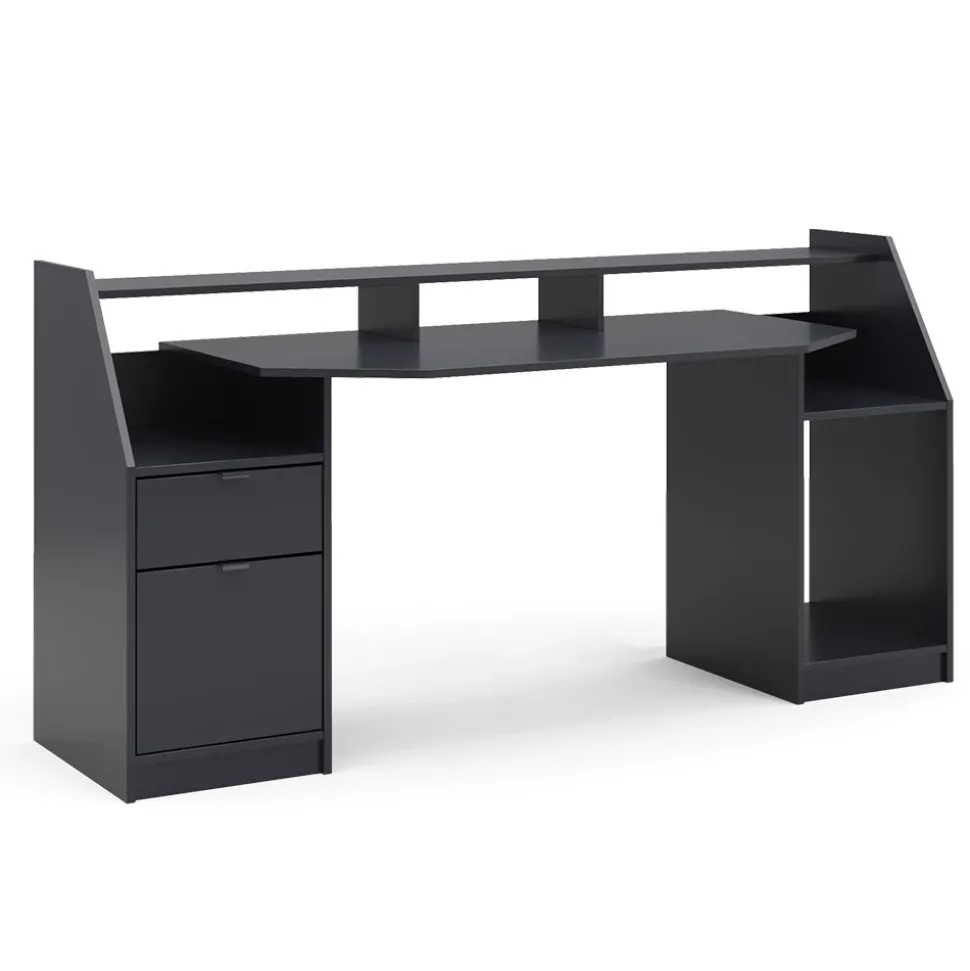 Der Gaming Tisch Joel ist der perfekte Schreibtisch sowohl für Gamer als auch für Büroarbeiter mit einem Auge für modernen Stil. Er bietet offene und geschlossene Einlegeböden, ein Regal für Ihre Systemeinheit und ein Display über Kopf. Dieses Modell ist Teil der Serie Joel mit anderen Varianten, so dass Sie Ihren gesamten Arbeitsbereich aufeinander abstimmen können. Der Joel Gaming Tisch bietet nicht nur Funktionalität, sondern auch ein elegantes Design, das Ihren Arbeitsbereich aufwerten wird. Stellen Sie sich vor, wie Sie Ihre Lieblingsvideospiele oder das Arbeiten an Ihren Projekten auf diesem stilvollen Tisch genießen – ein Muss für jeden, der sich nach einem Schreibtisch sehnt, der sowohl funktional als auch ansprechend ist.