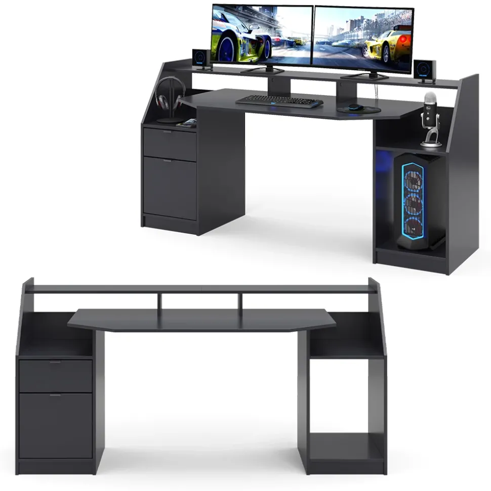 - Der Computertisch bietet Ihnen viel Stauraum durch verschiedene Verstaumöglichkeiten, Ablageflächen und genügend Platz für Ihren Rechner.
