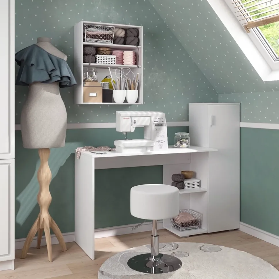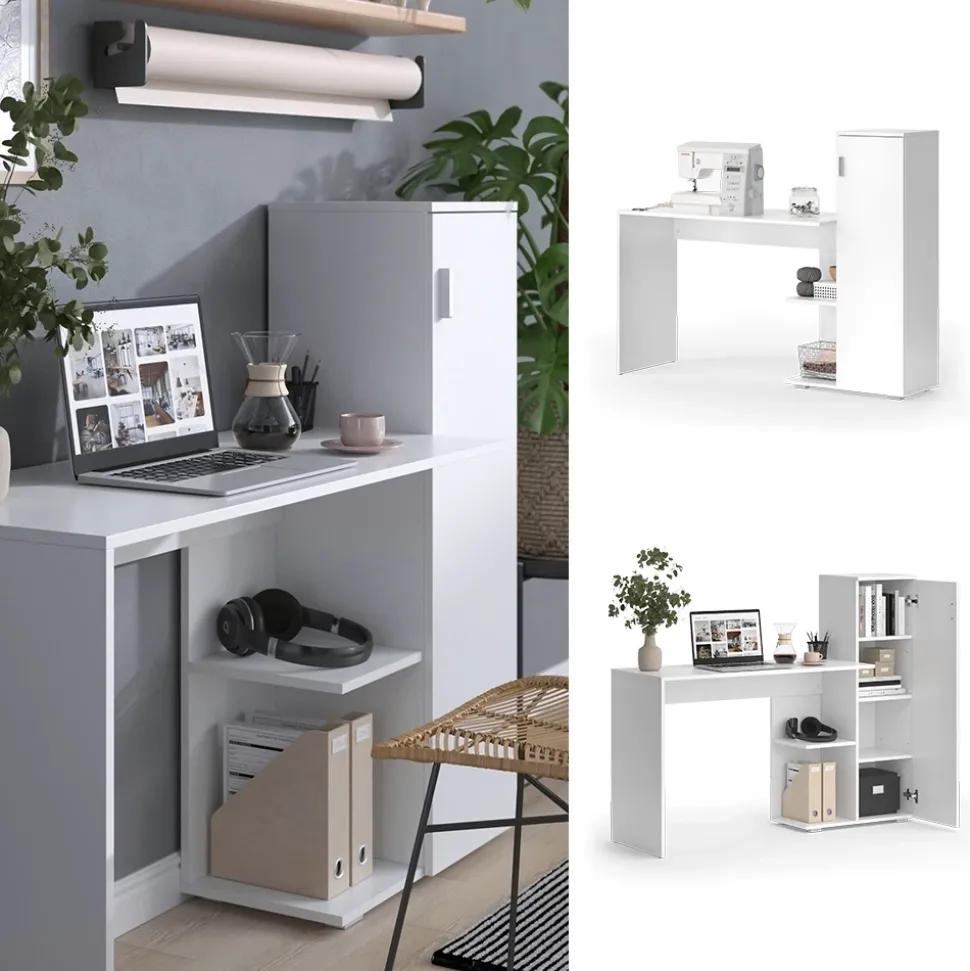 - Ein Arbeitstisch für das Büro mit einer Tür sowie 4 geschlossenen und 2 offenen Fächern. Ideal für eine organisierte Arbeitsumgebung.