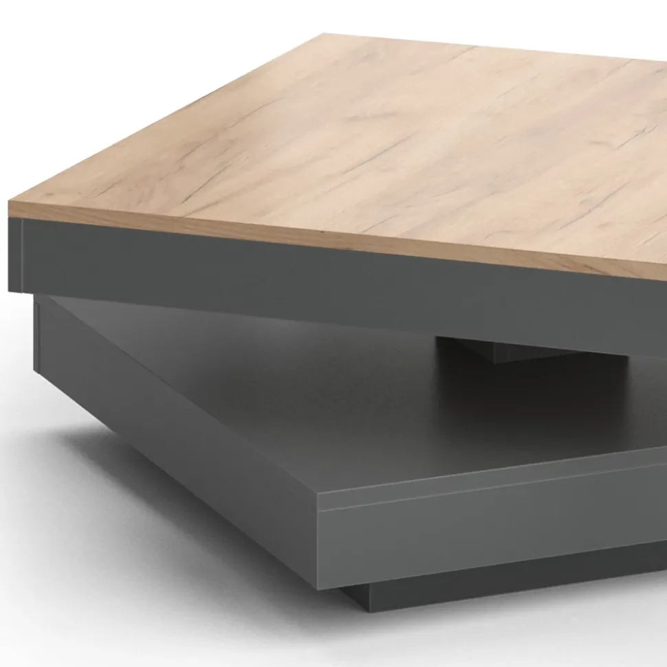 „Elias“ ist ein drehbarer Couchtisch, der in mehreren Farbkombinationen erhältlich ist. Er bietet Funktionalität und Stil für Ihr Wohnzimmer und ermöglicht es Ihnen, den Tisch nach Bedarf zu drehen.