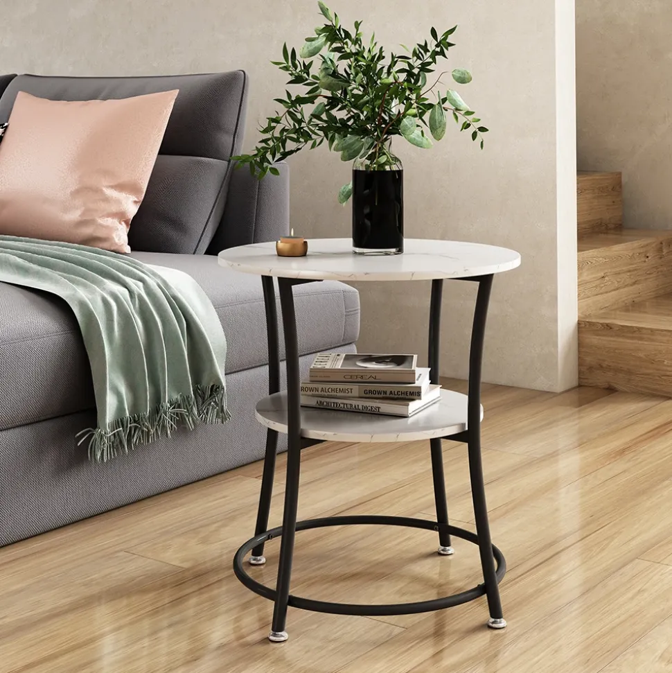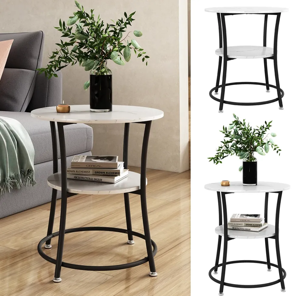 - Dieser runde Couchtisch mit Ablage ist ein ideales Möbelstück für das Wohnzimmer und bietet zusätzlichen Platz für Bücher oder Zeitschriften.