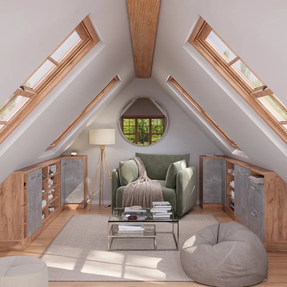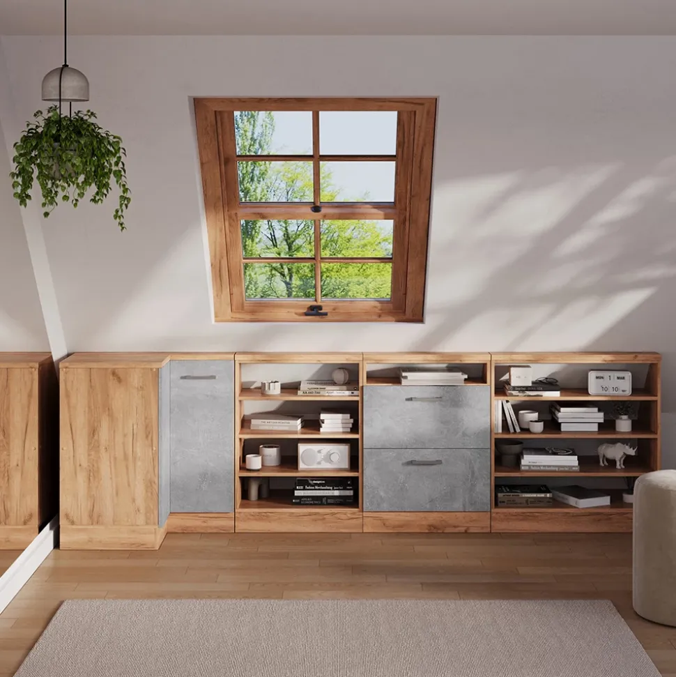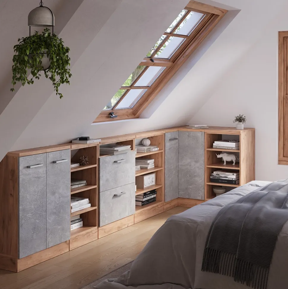 - Die Dachschrägenmöbel Rion sind die ideale Lösung, um ungenutzten Raum unter dem Dach optimal zu nutzen. Sie ermöglichen eine durchdachte und effiziente Gestaltung des vorhandenen Platzes.