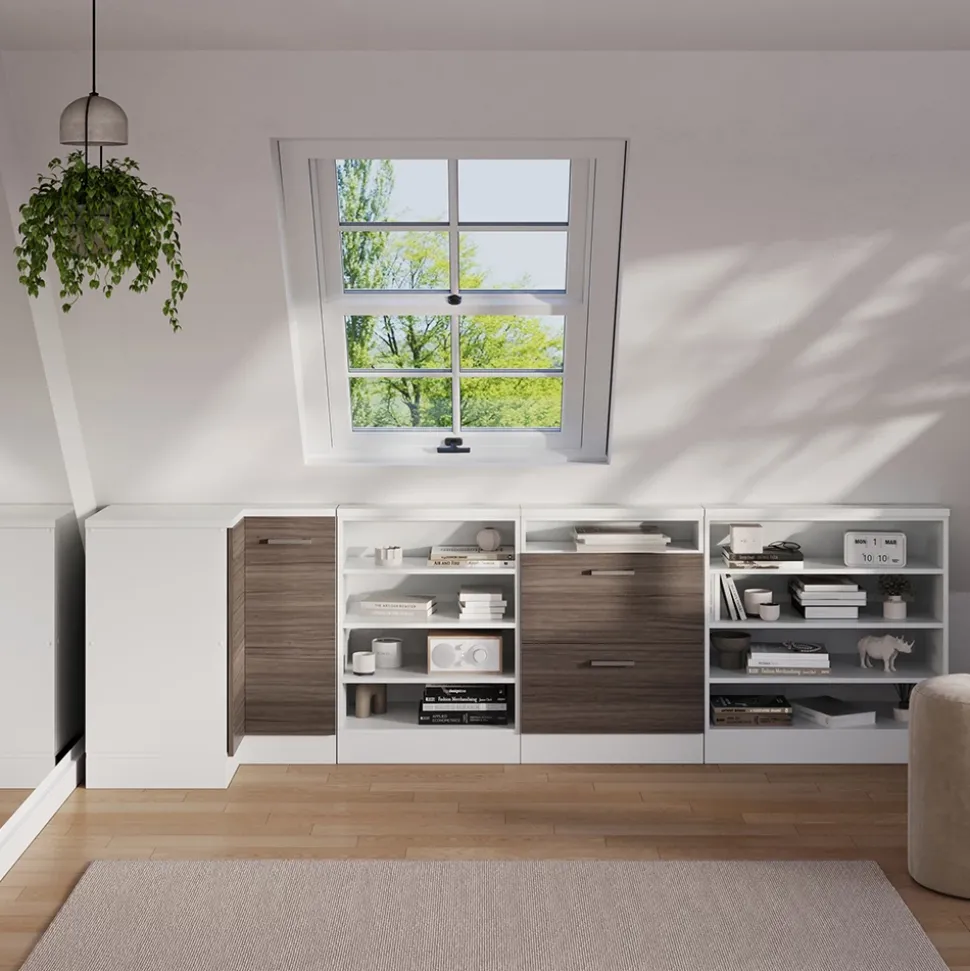 - Die Dachschrägenmöbel Rion sind die ideale Lösung, um ungenutzten Raum unter dem Dach optimal zu nutzen. Sie ermöglichen eine durchdachte und effiziente Gestaltung des vorhandenen Platzes.