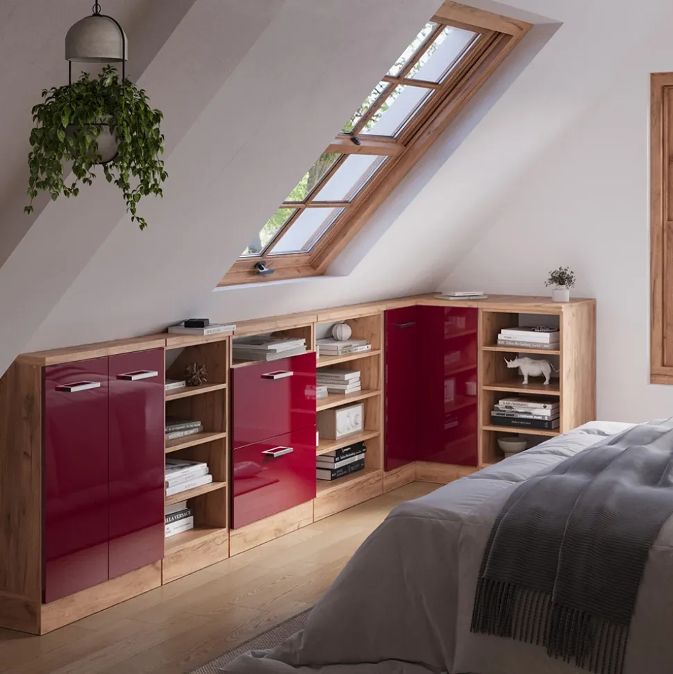 - Die Dachschrägenmöbel Rion sind die ideale Lösung, um ungenutzten Raum unter dem Dach optimal zu nutzen. Sie ermöglichen eine durchdachte und effiziente Gestaltung des vorhandenen Platzes.