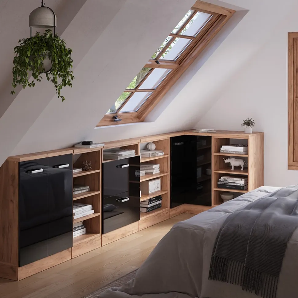 - Die Dachschrägenmöbel Rion sind die ideale Lösung, um ungenutzten Raum unter dem Dach optimal zu nutzen. Sie ermöglichen eine durchdachte und effiziente Gestaltung des vorhandenen Platzes.