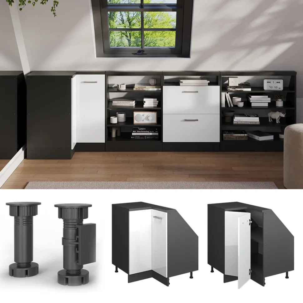 - Die Dachschrägenmöbel Rion sind die ideale Lösung, um ungenutzten Raum unter dem Dach optimal zu nutzen. Sie ermöglichen eine durchdachte und effiziente Gestaltung des vorhandenen Platzes.