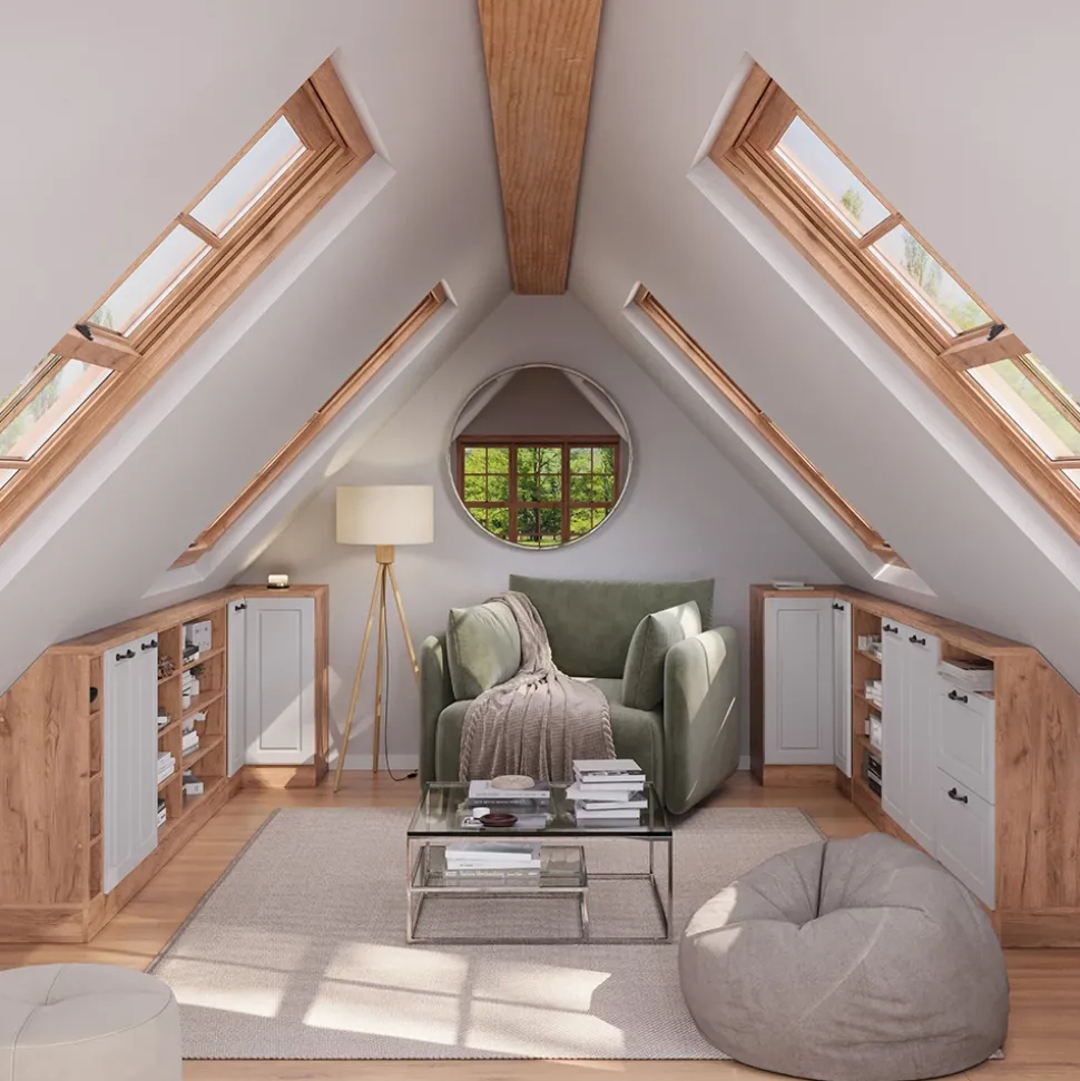 - Die Dachschrägenmöbel Rion sind die ideale Lösung, um ungenutzten Raum unter dem Dach optimal zu nutzen. Sie ermöglichen eine durchdachte und effiziente Gestaltung des vorhandenen Platzes.