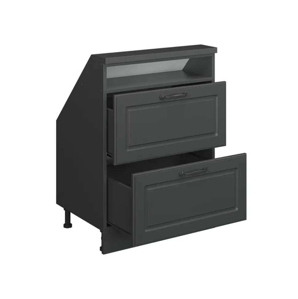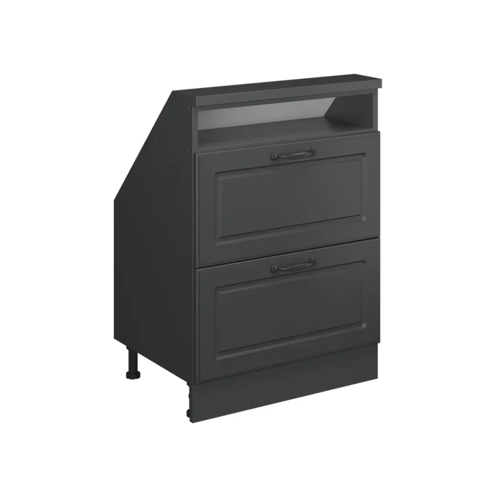 Der Dachschrägenschrank Rion ist die ideale Lösung, um Ihre Dachschrägen optimal zu nutzen. Mit zwei ausziehbaren Schubladen und einem offenen oberen Fach bietet er großzügigen Stauraum für Kleidung und Alltagsgegenstände. Die robuste Konstruktion und die schräge Oberseite machen ihn zu einem stabilen und stilvollen Möbelstück. Versteckte Füße sorgen für sicheren Stand und ein elegantes Gesamtbild.