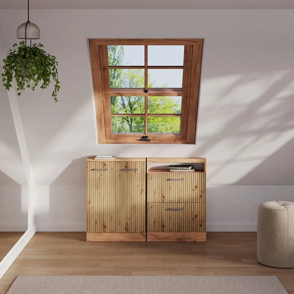 - Die Dachschrägenmöbel Rion sind die perfekte Lösung, um ungenutzten Raum unter dem Dach optimal zu nutzen. Sie sorgen für eine effiziente und durchdachte Ausnutzung des vorhandenen Platzes.
