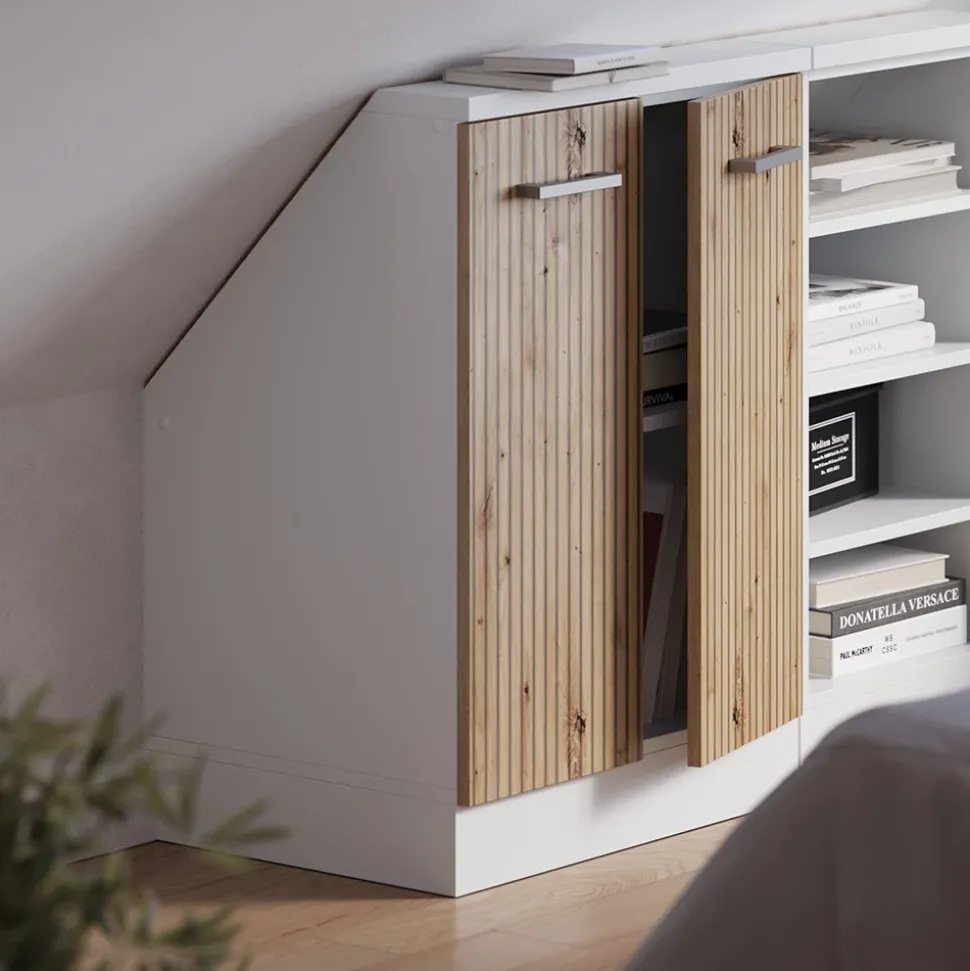 - Die Dachschrägenmöbel Rion sind die ideale Lösung, um ungenutzten Raum unter dem Dach optimal zu nutzen. Sie ermöglichen eine durchdachte und effiziente Gestaltung des vorhandenen Platzes.
