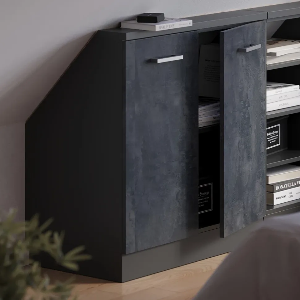 - MAßE: Der Schrank unter der Schräge ist 80 cm breit und 81,6 cm hoch. Detaillierte Angaben zur Tiefe finden Sie in den Produktbildern.