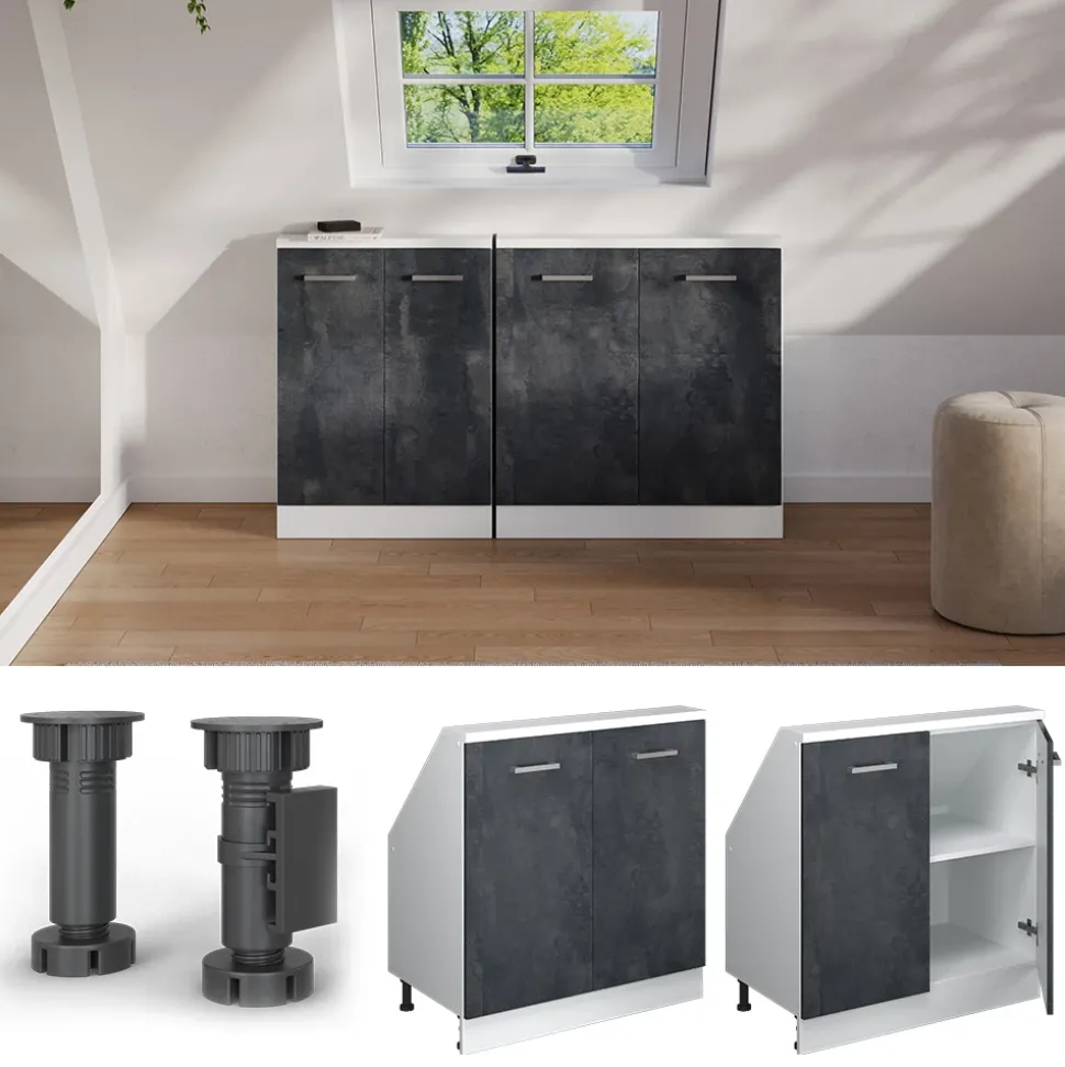 - MAßE: Der Schrank unter der Schräge ist 80 cm breit und 81,6 cm hoch. Detaillierte Angaben zur Tiefe finden Sie in den Produktbildern.