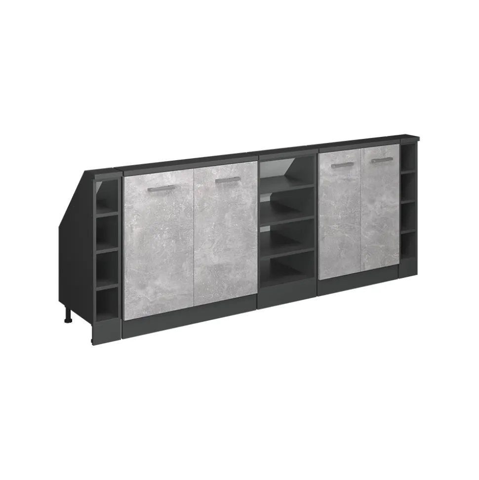 Der Dachschrägenschrank Rion ist die passende Lösung für jedes Zuhause mit schrägen Wänden. Durchdacht aufgebaut, bietet er geräumige, geschlossene Schränke, um all Ihre Habseligkeiten ordentlich zu verstauen. Die offenen Seitenregale eignen sich ideal, um dekorative Gegenstände in Szene zu setzen. Dank der robusten Konstruktion und der abgeschrägten Oberseite fügt sich der Schrank passgenau unter Dachschrägen ein. Die versteckten Füße sorgen für Stabilität und ein elegantes Erscheinungsbild. Bringen Sie Ordnung und Stil in Ihr Zuhause mit dem Rion Dachschrägenschrank.