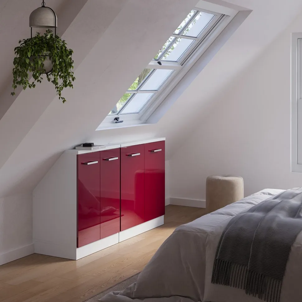 Der Dachschrägenschrank Rion ist eine clevere Lösung für Räume mit schrägen Wänden. Das speziell angepasste Schranksystem nutzt den vorhandenen Platz effizient und bietet praktischen Stauraum. Mit robuster Bauweise und dezenten Griffen überzeugt Rion im Alltag durch Stabilität und Komfort. Die abgeschrägte Oberseite fügt sich optisch harmonisch ein. Eine smarte Wahl für mehr Ordnung und Stauraum unter dem Dach.