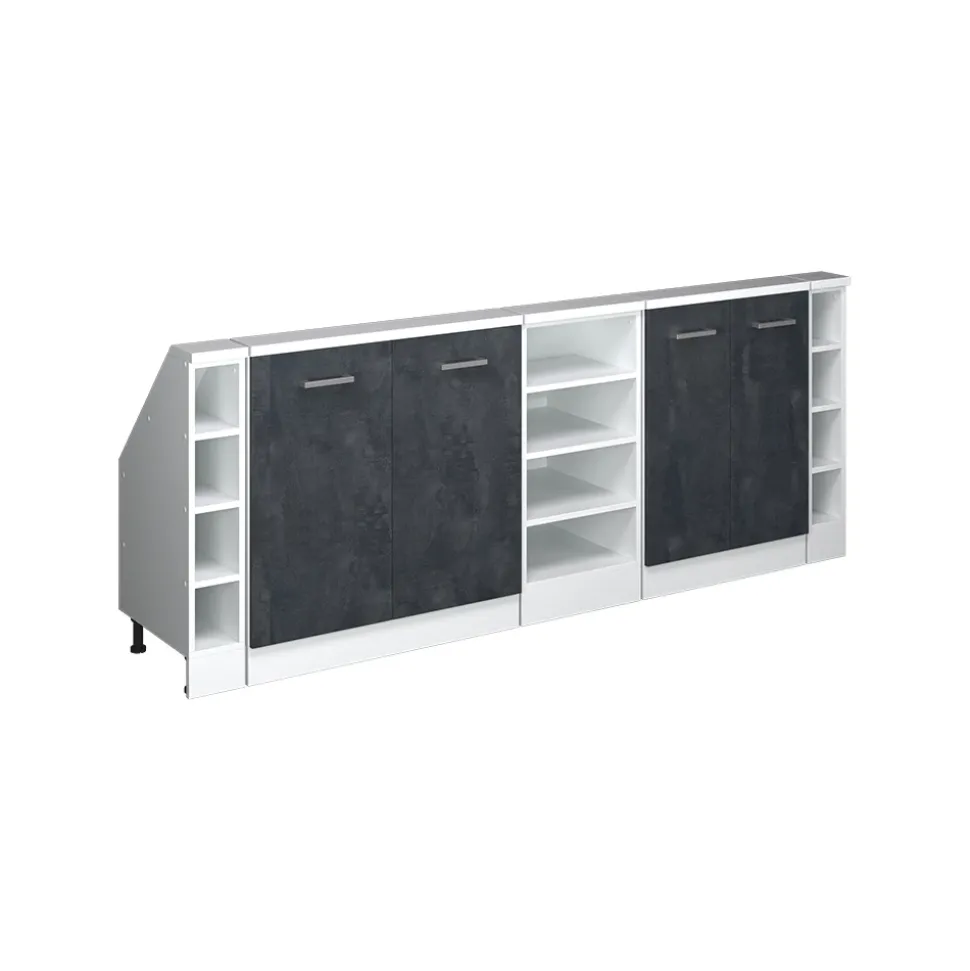 Der Dachschrägenschrank Rion ist die passende Lösung für jedes Zuhause mit schrägen Wänden. Durchdacht aufgebaut, bietet er geräumige, geschlossene Schränke, um all Ihre Habseligkeiten ordentlich zu verstauen. Die offenen Seitenregale eignen sich ideal, um dekorative Gegenstände in Szene zu setzen. Dank der robusten Konstruktion und der abgeschrägten Oberseite fügt sich der Schrank passgenau unter Dachschrägen ein. Die versteckten Füße sorgen für Stabilität und ein elegantes Erscheinungsbild. Bringen Sie Ordnung und Stil in Ihr Zuhause mit dem Rion Dachschrägenschrank.