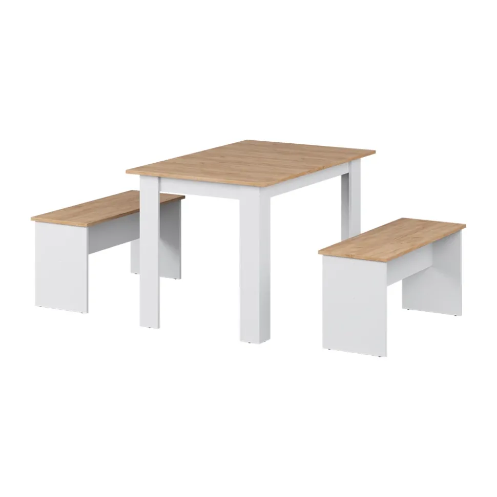 Das Esstisch Set „Sentio“ mit 2 Bänken ist die perfekte Wahl für alle, die eine stilvolle und dennoch praktische Essgruppe suchen. Der klassische Stil passt zu jeder Einrichtung und die ergonomische Gestaltung sorgt für maximalen Komfort beim Essen oder geselligen Beisammensein. Die robuste Bauweise garantiert eine lange Lebensdauer, so dass Sie dieses Set jahrelang genießen können. Besonders schön ist, dass es auch in anderen Ausführungen erhältlich ist, so dass Sie die perfekte Größe für Ihre Küche oder Ihr Esszimmer finden können. Ob für eine kleine Familie oder eine größere Gruppe von Freunden, das Sentio Set ist die ideale Wahl. Investieren Sie in Qualität und wählen Sie Sentio!