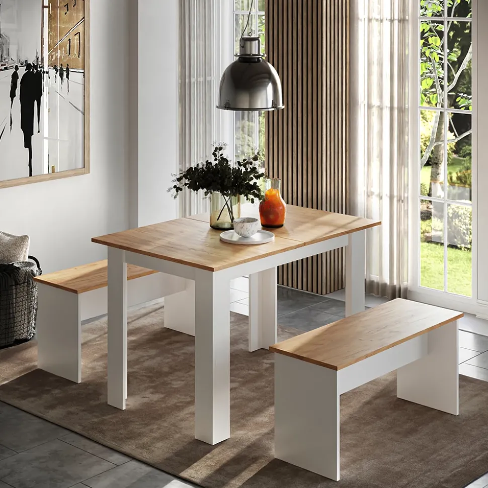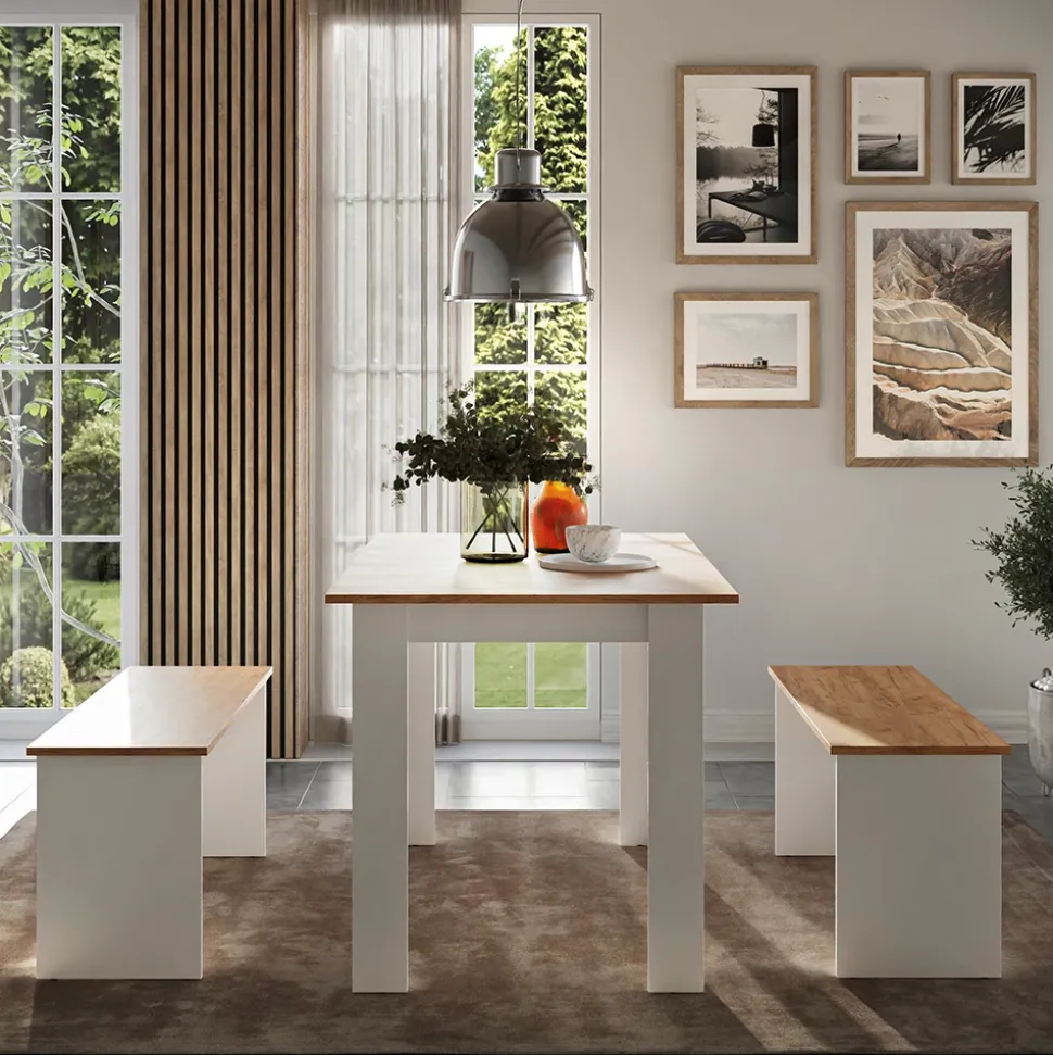 - LIEFERUMFANG: Esstisch Set mit 2x Bank, Montageanleitung, Montagematerial (Dekoration nicht enthalten)