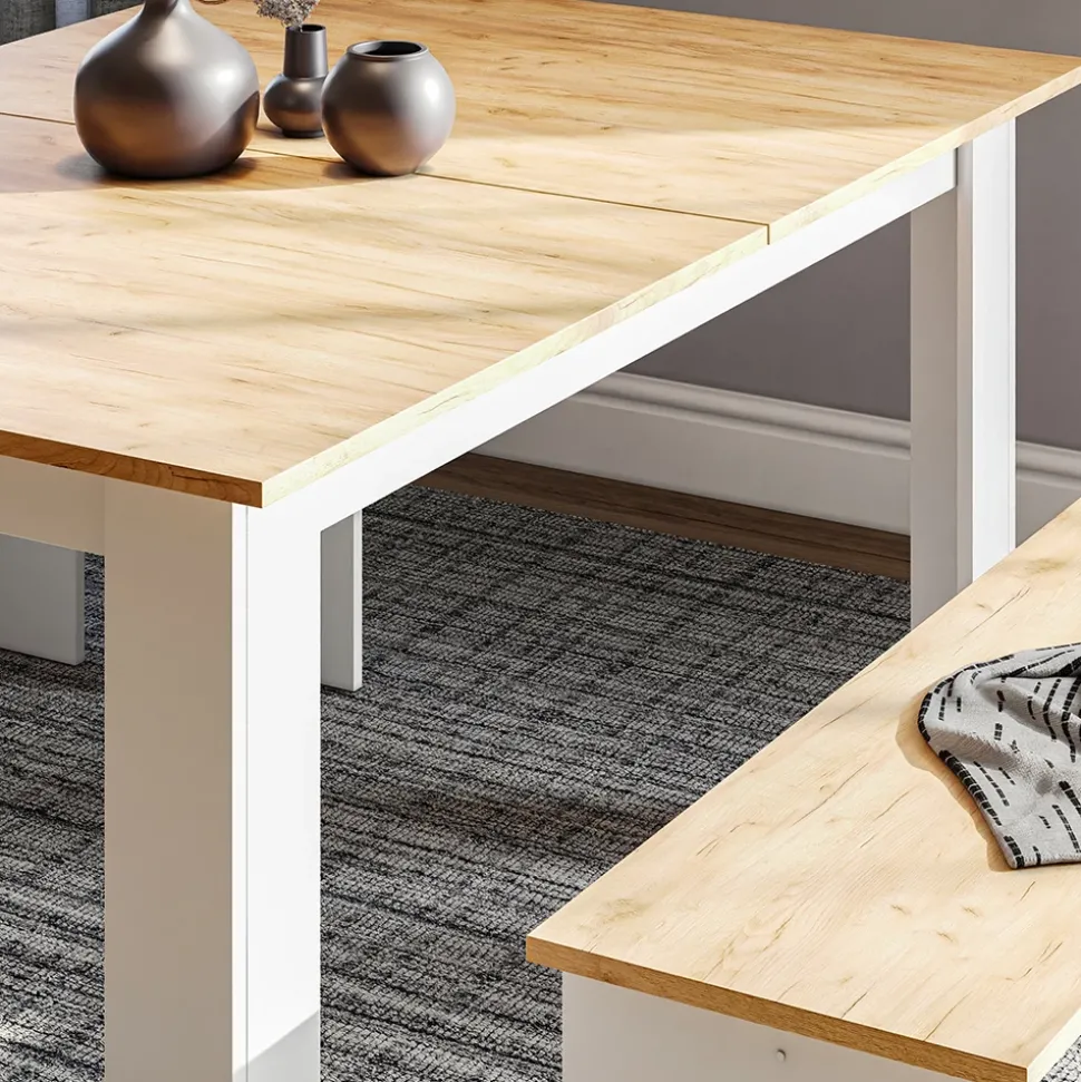 - LIEFERUMFANG: Esstisch, 2 Bänke, Montageanleitung, Montagematerial (Dekoration nicht enthalten).