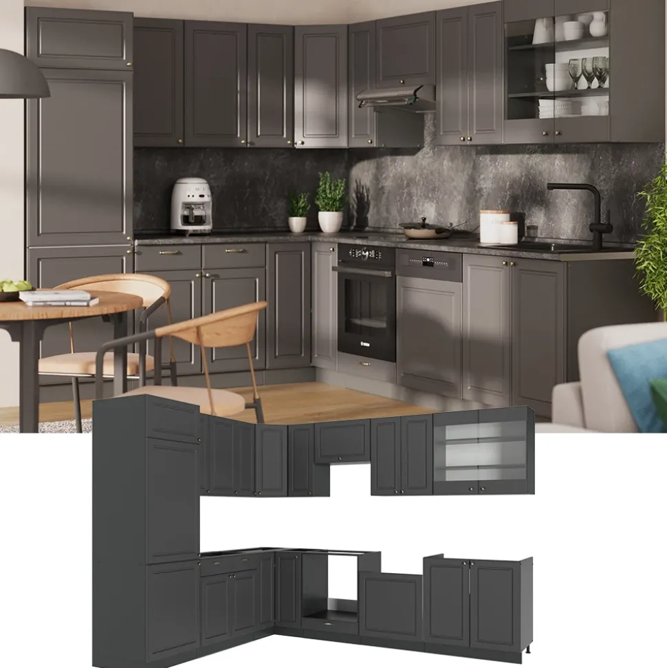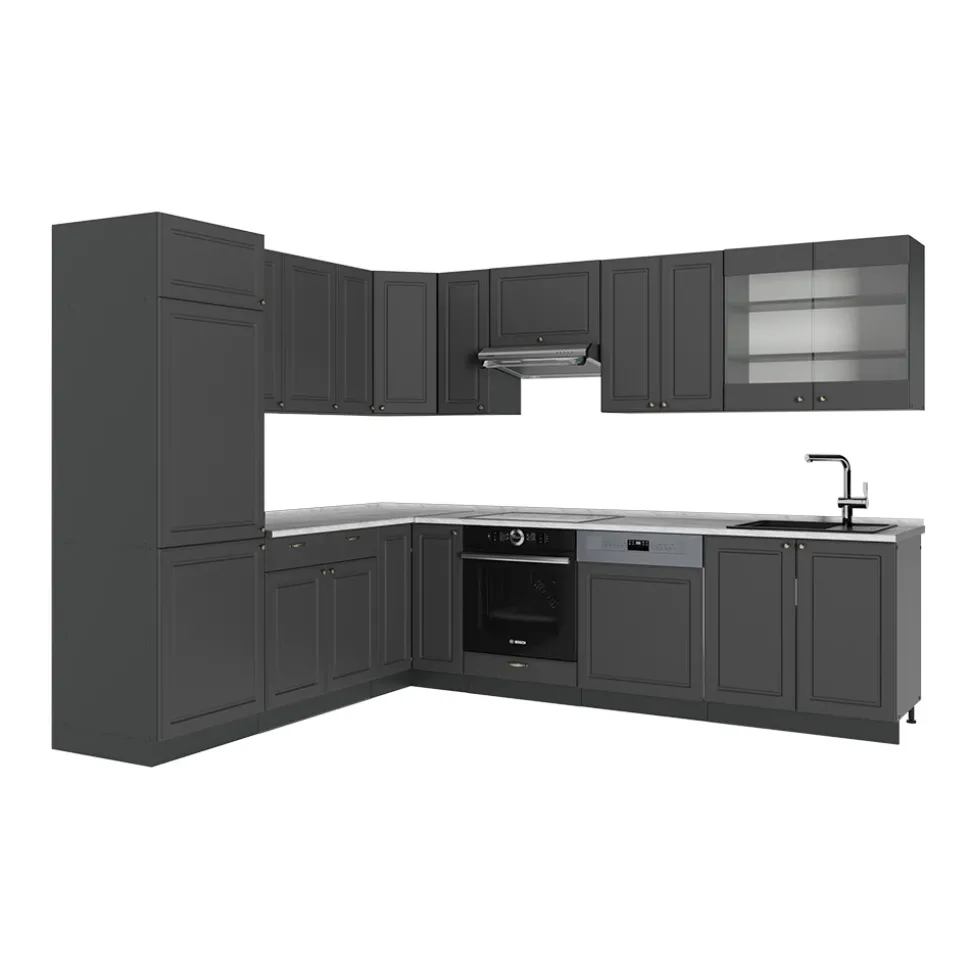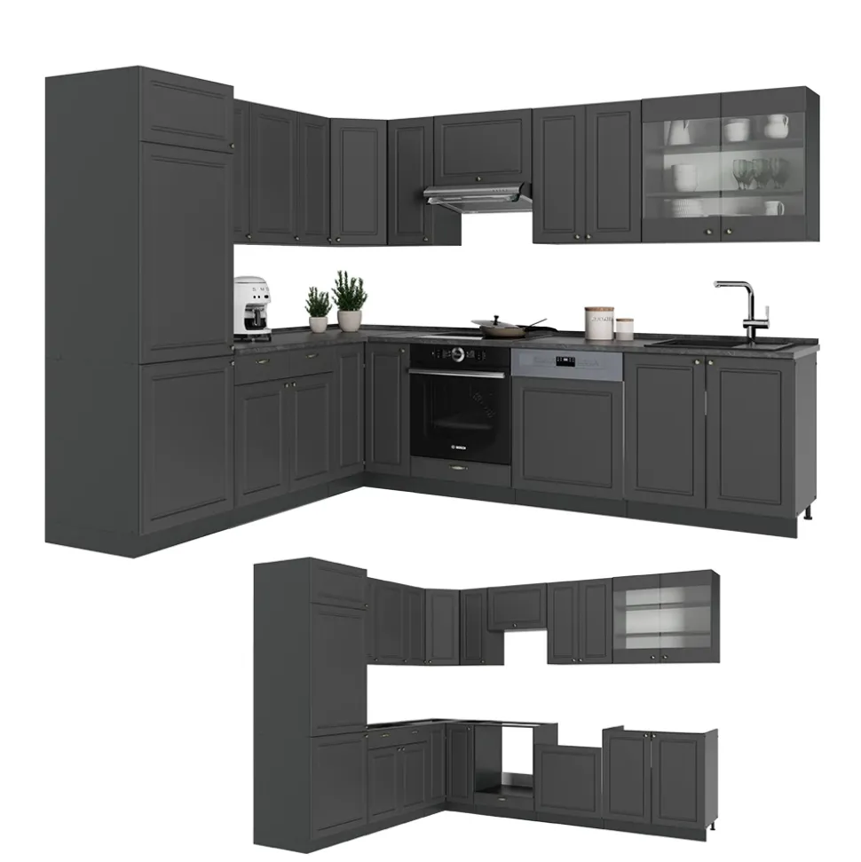 - MATERIAL: Die Winkelküche besteht aus pflegeleichter Spanplatte 16 mm, mit einer Melaminharzbeschichtung. Alle Fronten der Kücheneinheiten sind aus hochwertigem MDF hergestellt