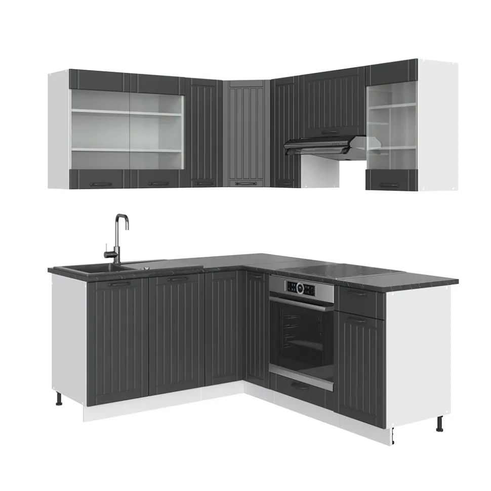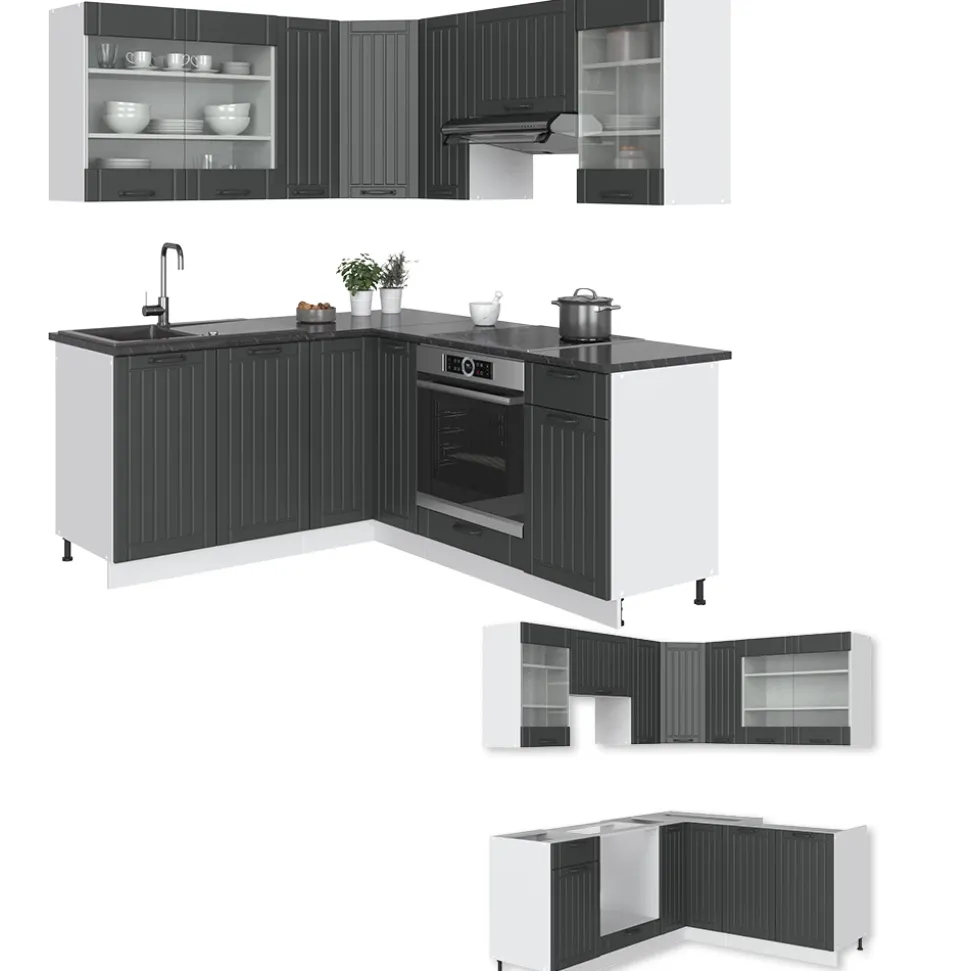 - MATERIAL: Die Winkelküche besteht aus pflegeleichter Spanplatte 16 mm, mit einer Melaminharzbeschichtung. Alle Fronten der Kücheneinheiten sind aus hochwertigem MDF hergestellt