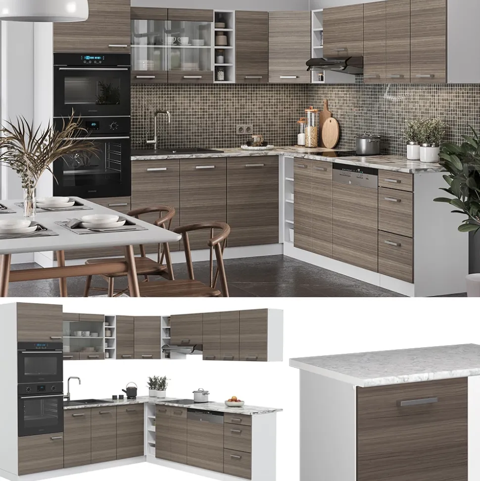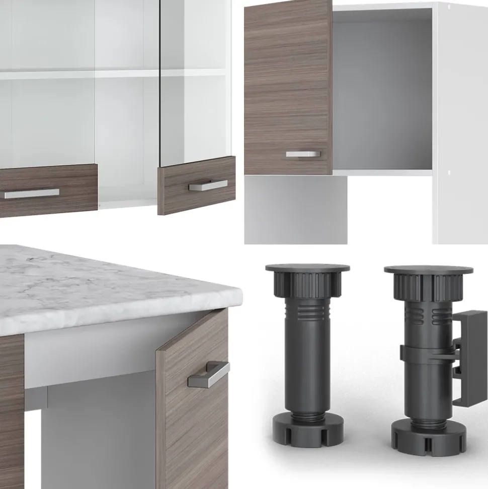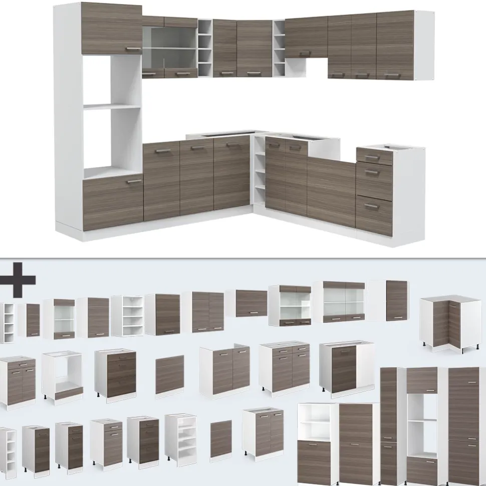 - Die Küchenzeile in L-Form bietet die Möglichkeit zur individuellen Umstellung und zum Bezug zusätzlicher Module. höhenverstellbare Füße sorgen für zusätzliche Flexibilität.