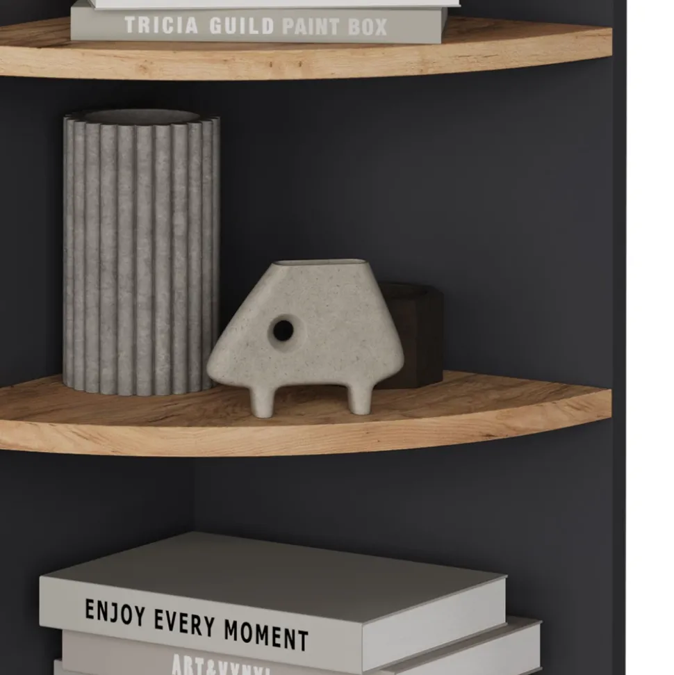 Das Eckregal ist das perfekte Möbelstück für jeden, der ein originelles Design liebt und gleichzeitig praktischen Stauraum benötigt. Durch seine halbkreisförmige Form fügt sich das Regal perfekt in jede Ecke des Raumes ein und wird damit zum Blickfang jeder Wohnung. Die 3 offenen Ablagen bieten ausreichend Platz für Bücher, Dekoration oder andere Gegenstände, die Sie in Szene setzen möchten. Mit der Wandhalterung lässt sich das Regal ganz einfach und sicher an der Wand befestigen. Das Modell lässt sich zudem hervorragend mit anderen Möbeln kombinieren und verleiht so jedem Wohnzimmer eine ganz besondere Note. Gönnen Sie sich jetzt das Eckregal und schaffen Sie sich Ihren ganz eigenen Wohntraum!