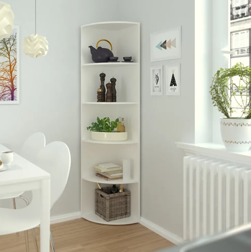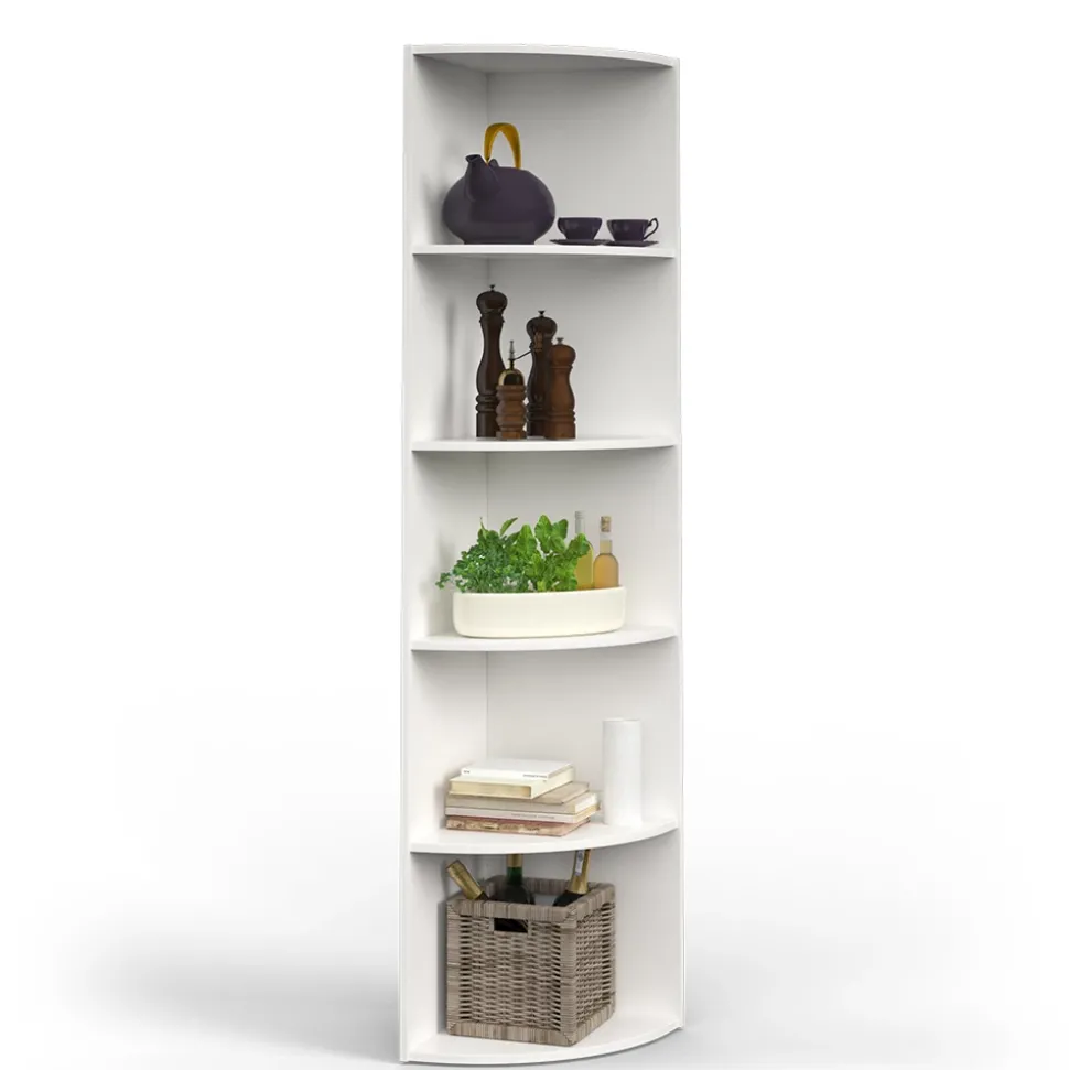 - Das stehende Bücherregal ist platzsparend und hat eine halbkreisförmige Form. Mit 5 offenen Ablagen bietet es ausreichend Platz für Bücher und andere Gegenstände.
