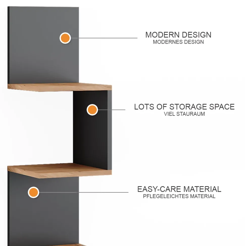- Das Bücherregal verfügt über ausreichend Platz für Bücher und Dekoration, ist stabil und einfach zu montieren. Es bietet eine praktische Aufbewahrungslösung für Ihr Zuhause.