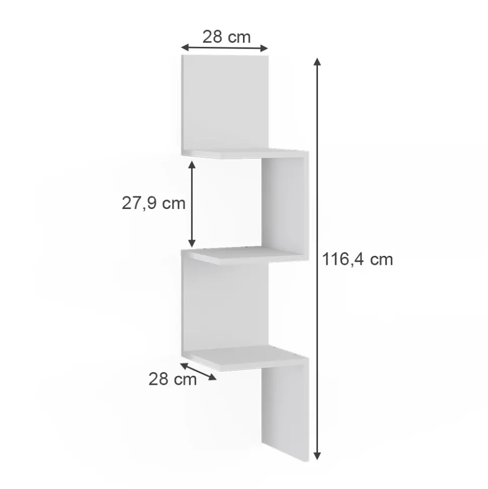 - MATERIAL: Das Eckregal besteht aus pflegeleichter Spanplatte, 16 mm.