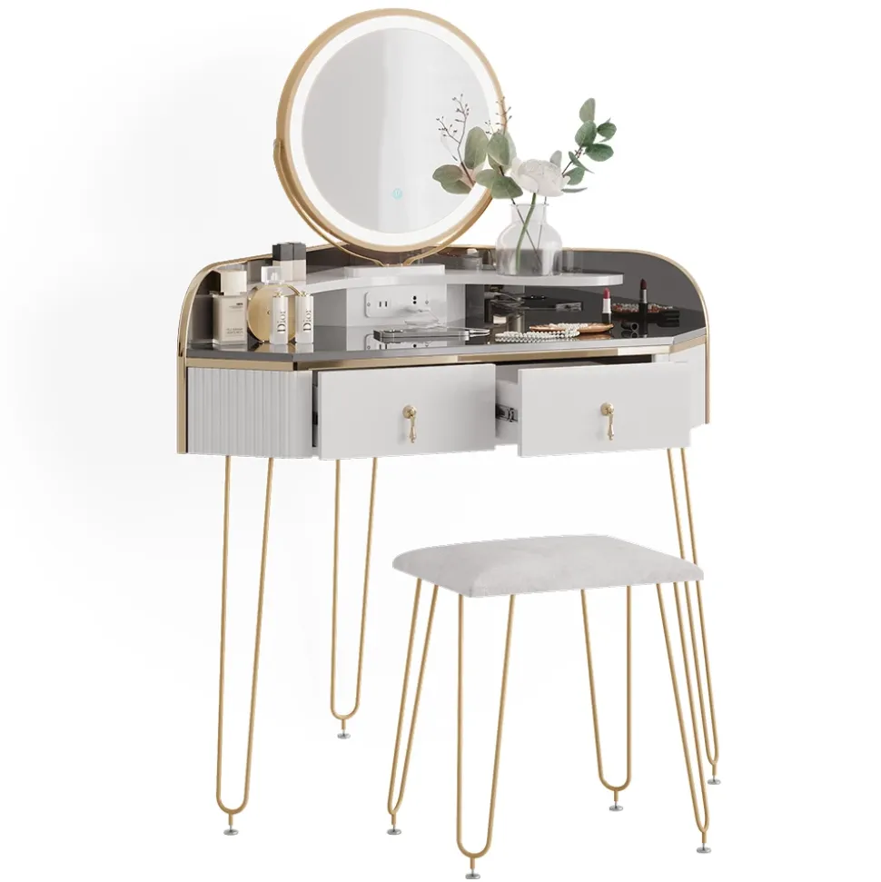 - Der Kosmetiktisch mit Spiegel bietet einen beleuchteten Spiegel sowie 2 Schubladen und einen Stuhl für mehr Komfort und Funktionalität.