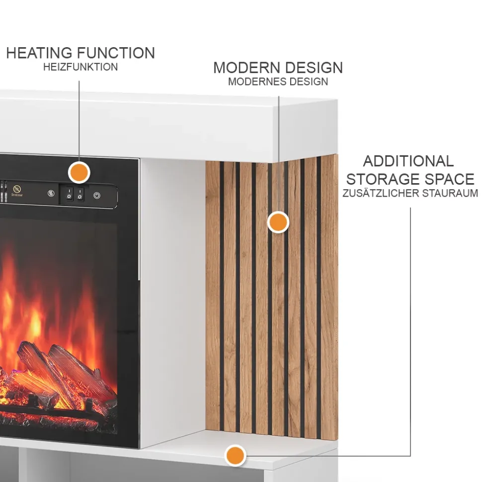 - MATERIAL: Der Elektrischer Kamin besteht aus pflegeleichtem MDF. Einige Bestandteile des Artikels sind aus Metall gefertigt.
