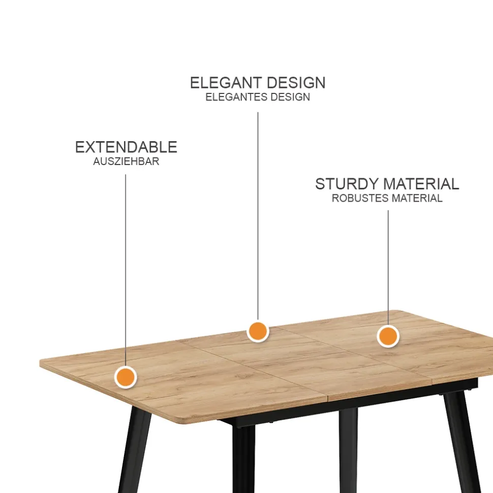 - Der ausziehbare Esszimmertisch bietet Flexibilität und Platz für gesellige Mahlzeiten im Esszimmer. Ein praktisches Möbelstück für Familien und Freunde.