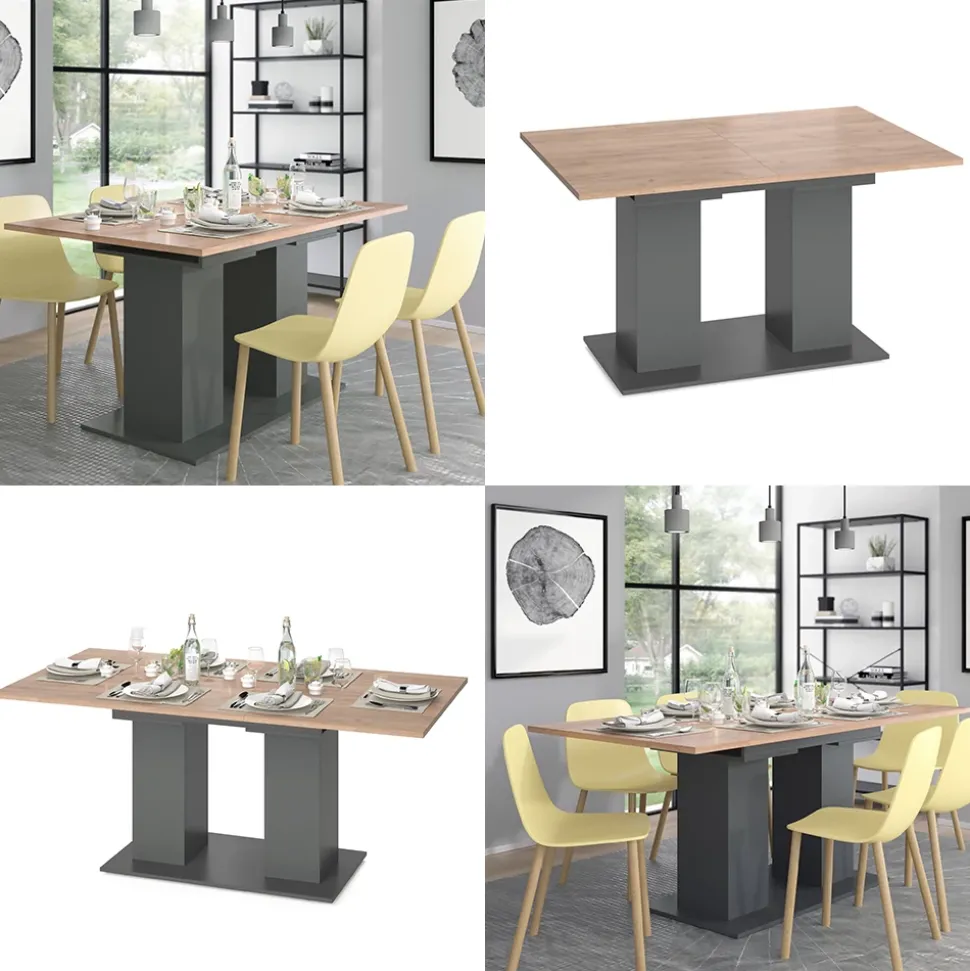 Der Esstisch „Dix“ ist die perfekte Lösung für jeden, der auf der Suche nach einem funktionalen und platzsparenden Tisch für die Küche oder das Esszimmer ist. Das solide und stabile Design des Tisches sorgt dafür, dass er auch bei häufiger Verwendung stets standhaft bleibt. Mit „Dix“ hast du eine fertige Lösung für deine Küche oder dein Esszimmer, die sowohl praktisch als auch stylisch ist. Zudem gibt es dieses Modell auch in anderen Ausführungen, sodass du den Tisch perfekt an deine Bedürfnisse anpassen kannst. Holen Sie sich mit dem „Dix“ Esstisch ein Stück Gemütlichkeit in Ihr Zuhause. Hier finden nicht nur Mahlzeiten statt, sondern auch Gespräche, Lachen und gemeinsame Zeit. Mit seiner ausziehbaren Tischplatte wird er Ihnen bei spontanem Besuch eine extra Portion Platz bieten. Ein Tisch, der nicht nur nützlich ist, sondern auch das Herz wärmt.