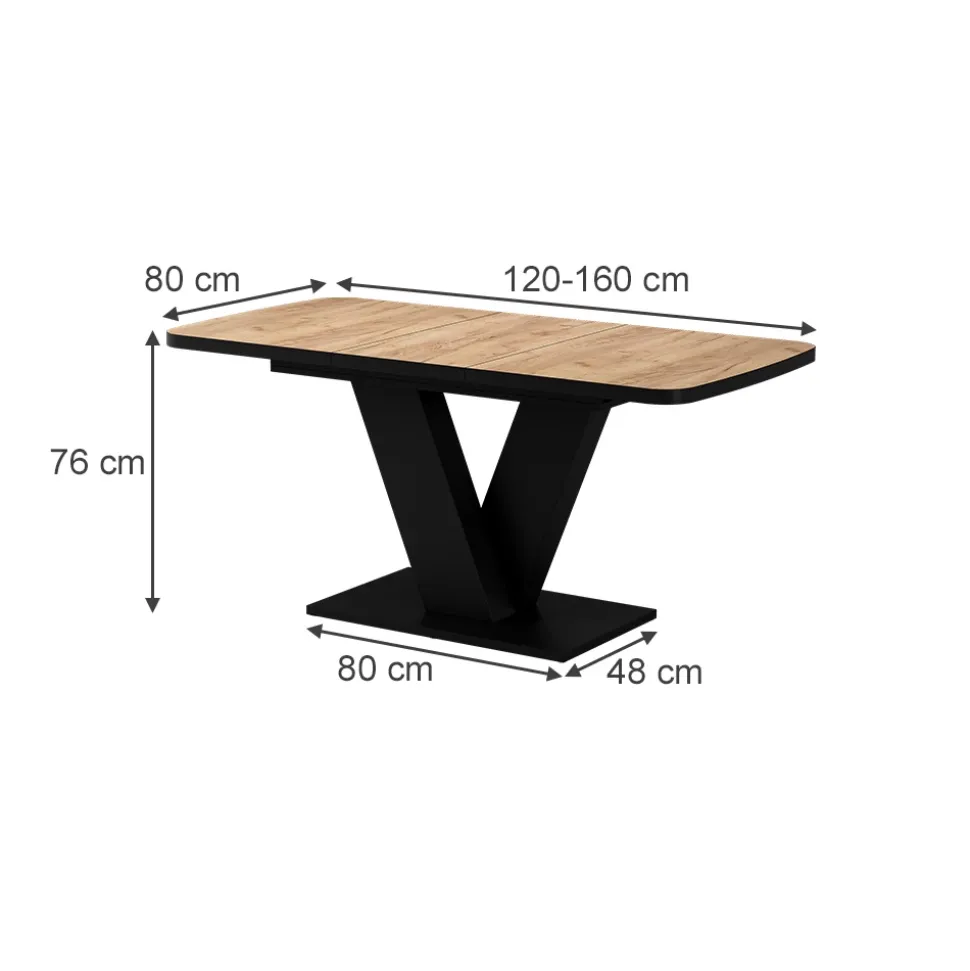 - MAßE: Der Küchentisch hat folgende Maße: Breite: 120-160 cm, Tiefe: 80 cm, Höhe. 76 cm. Die detaillierten Größen sind auf den Fotos angegeben.