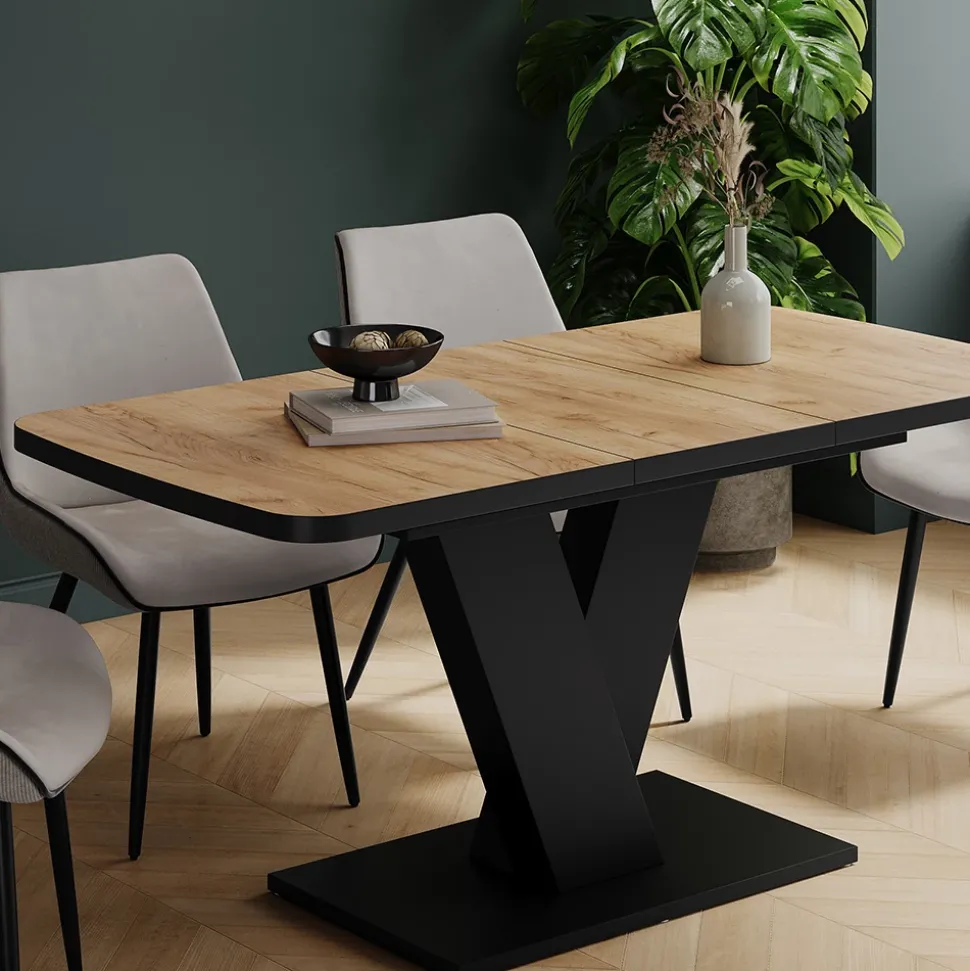 Entdecken Sie den Esstisch Fenaro – mehr als nur ein Möbelstück, sondern der Ort, an dem Erinnerungen entstehen. Dieser ausziehbare Tisch verwandelt Ihr Esszimmer in einen einladenden Raum für Familienfeiern, gemütliche Abendessen mit Freunden oder romantische Dinner. Mit seiner hochwertigen Verarbeitung und cleveren Funktionalität lässt sich der Tisch mühelos von 120 cm auf 160 cm erweitern, sodass Platz für alle ist, die Ihnen am Herzen liegen. Die zusätzliche Tischplatte kann diskret im Tisch verstaut werden, wenn sie nicht gebraucht wird. Gestalten Sie Ihre gemeinsamen Momente unvergesslich – mit Fenaro.