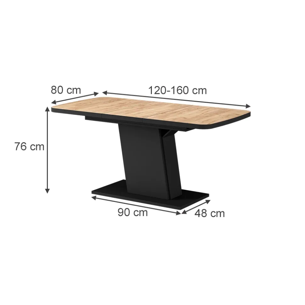 Tischplatte:120/160 x 3.6 x 80 cm (BxHxT)