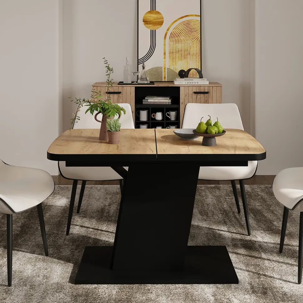 - Vielseitig: Der ausziehbare Esszimmertisch bietet flexiblen Platz, perfekt für verschiedene Anlässe, und lässt sich bei Bedarf einfach erweitern.