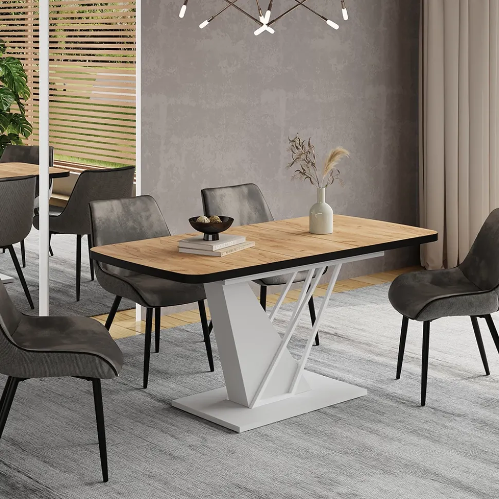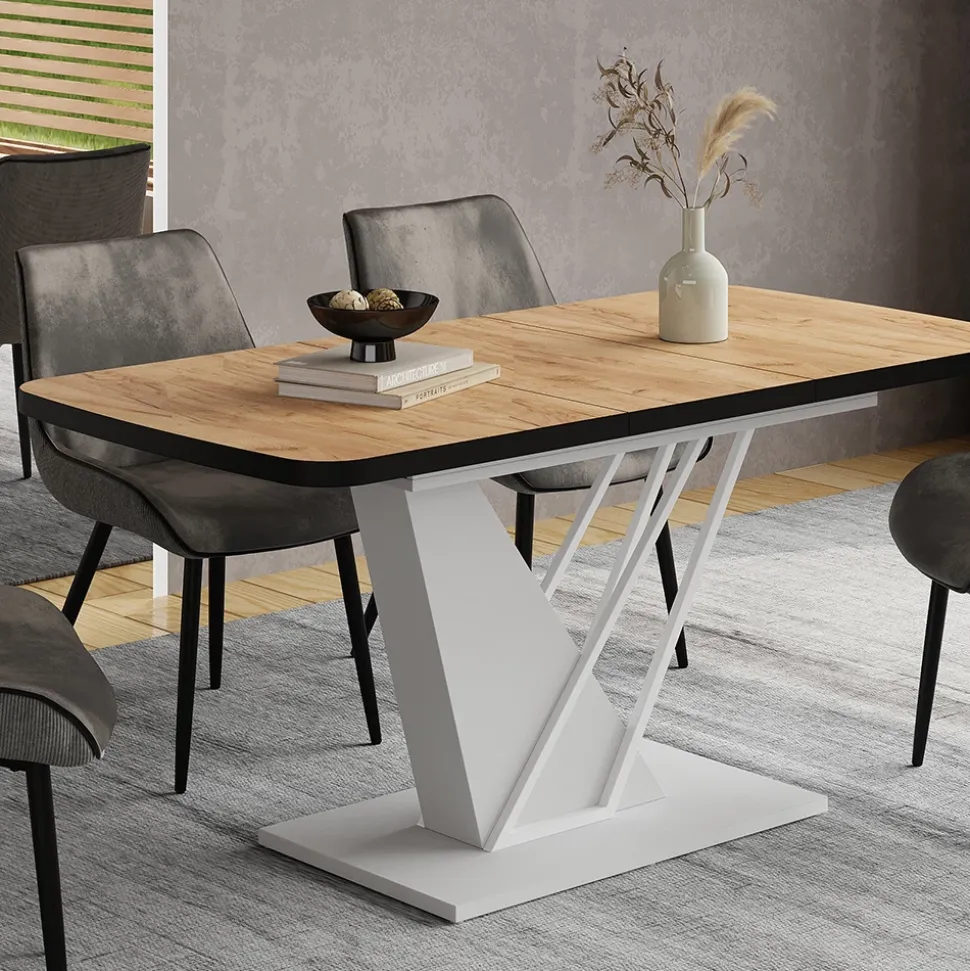 Entdecken Sie den Esstisch Fenaro – mehr als nur ein Möbelstück, sondern der Ort, an dem Erinnerungen entstehen. Dieser ausziehbare Tisch verwandelt Ihr Esszimmer in einen einladenden Raum für Familienfeiern, gemütliche Abendessen mit Freunden oder romantische Dinner. Mit seiner hochwertigen Verarbeitung und cleveren Funktionalität lässt sich der Tisch mühelos von 120 cm auf 160 cm erweitern, sodass Platz für alle ist, die Ihnen am Herzen liegen. Die zusätzliche Tischplatte kann diskret im Tisch verstaut werden, wenn sie nicht gebraucht wird. Gestalten Sie Ihre gemeinsamen Momente unvergesslich – mit Fenaro.