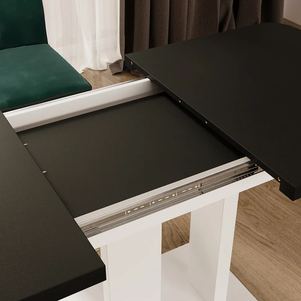 - Vielseitig: Der ausziehbare Esszimmertisch bietet flexiblen Platz, perfekt für verschiedene Anlässe, und lässt sich bei Bedarf einfach erweitern.