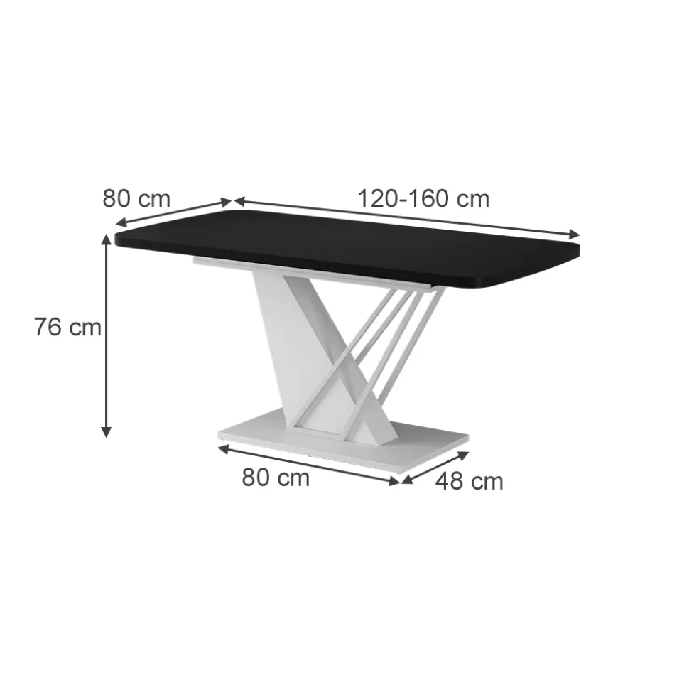 - MAßE: Der Küchentisch hat folgende Maße: Breite: 120-160 cm, Tiefe: 80 cm, Höhe. 76 cm. Die detaillierten Größen sind auf den Fotos angegeben.